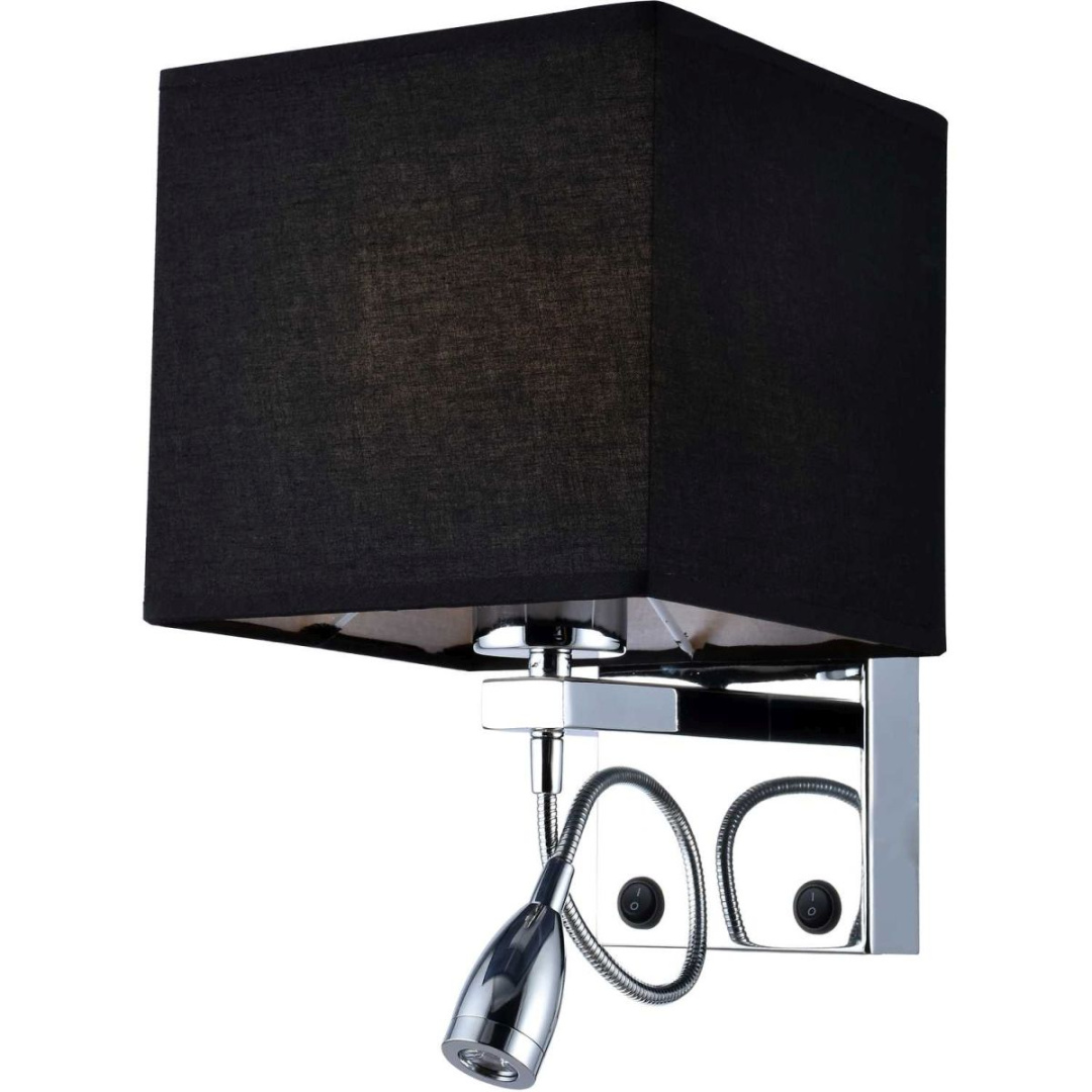 Бра 2064/02/02W Stilfort серии Duo - настенный светильник выполненный в стиле модерн. Арматура, изготовленная из хромированного металла, на контрасте сочетается с тканевым плафоном в черном исполнении.