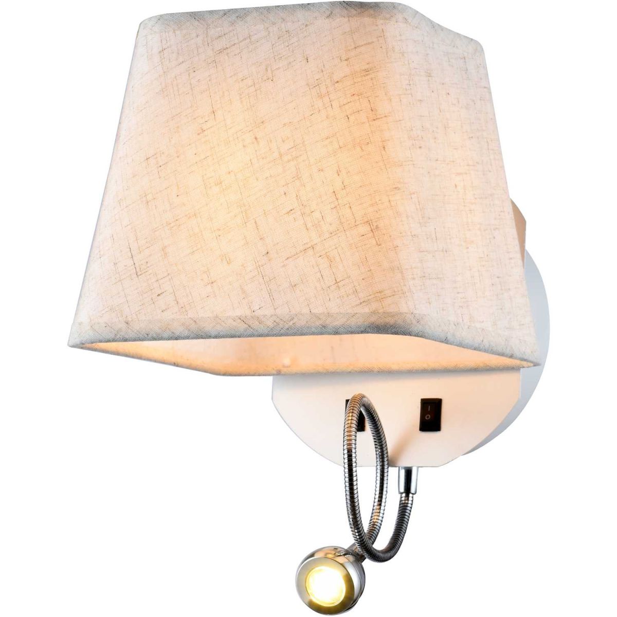 Бра 2067/01/02W Stilfort серии Nola - настенный светильник выполненный в стиле модерн. Арматура изготовлена из металла двух цветов - "белый" и "хром". Плафон из ткани нежного бежевого оттенка.