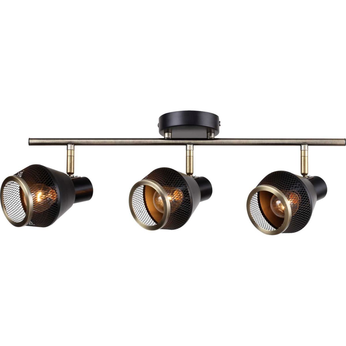 Спот настенно-потолочный из коллекции Vekta выполнен из металла, окрашенного в черный цвет. Отдельные элементы арматуры гальванизированы в цвет бронзы. Металлические плафоны спота декорированы сеткой, окрашенной в черный цвет, и кантом, гальванизированным в цвет бронзы. Плафоны имеют поворотный механизм.