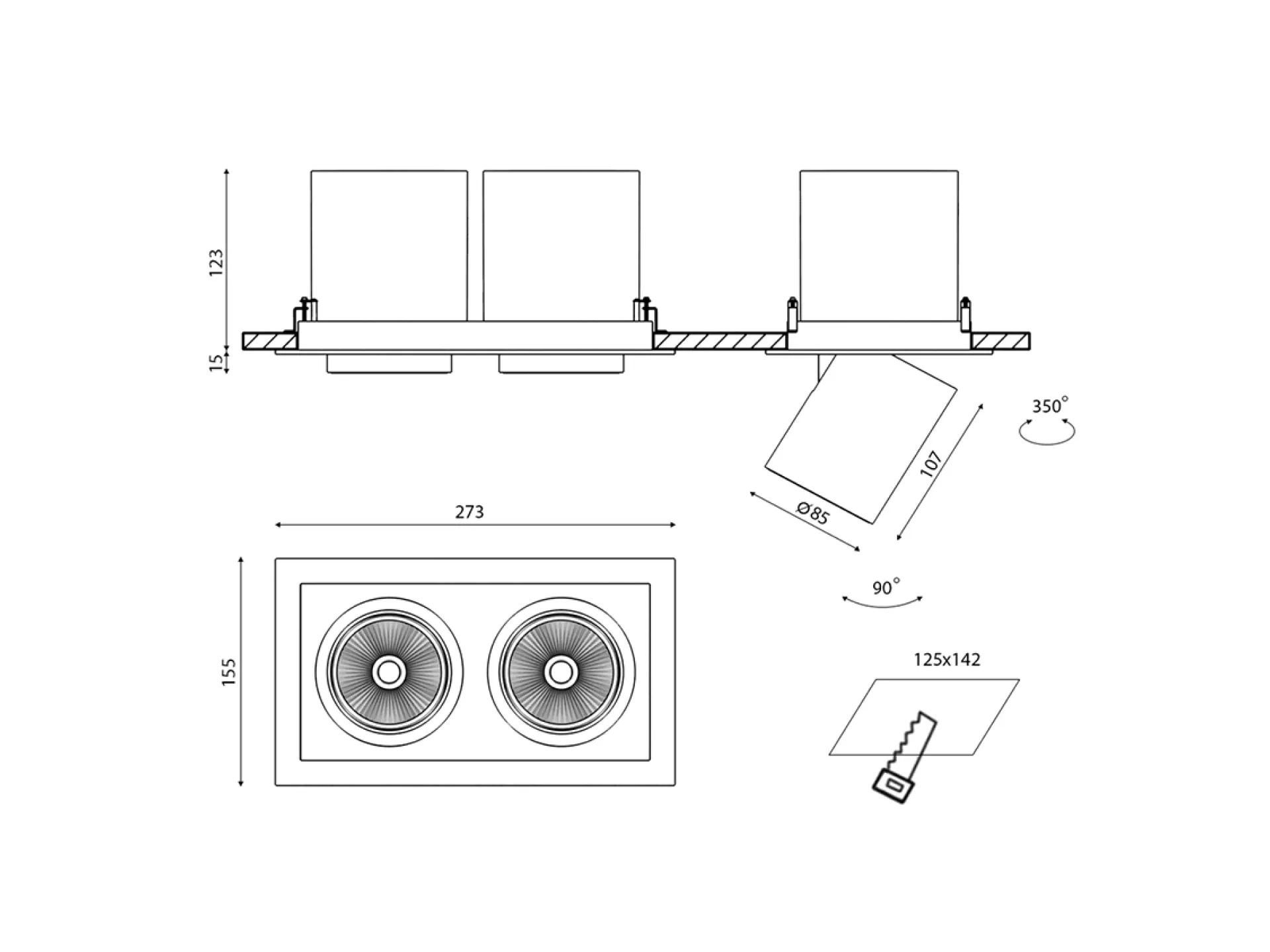 Светильник светодиодный потолочный встраиваемый поворотно-выдвижной, серия SPL, Ч/Б, 25Вт, IP20, Теплый белый (3000К), SPL-SQ2-25-WW