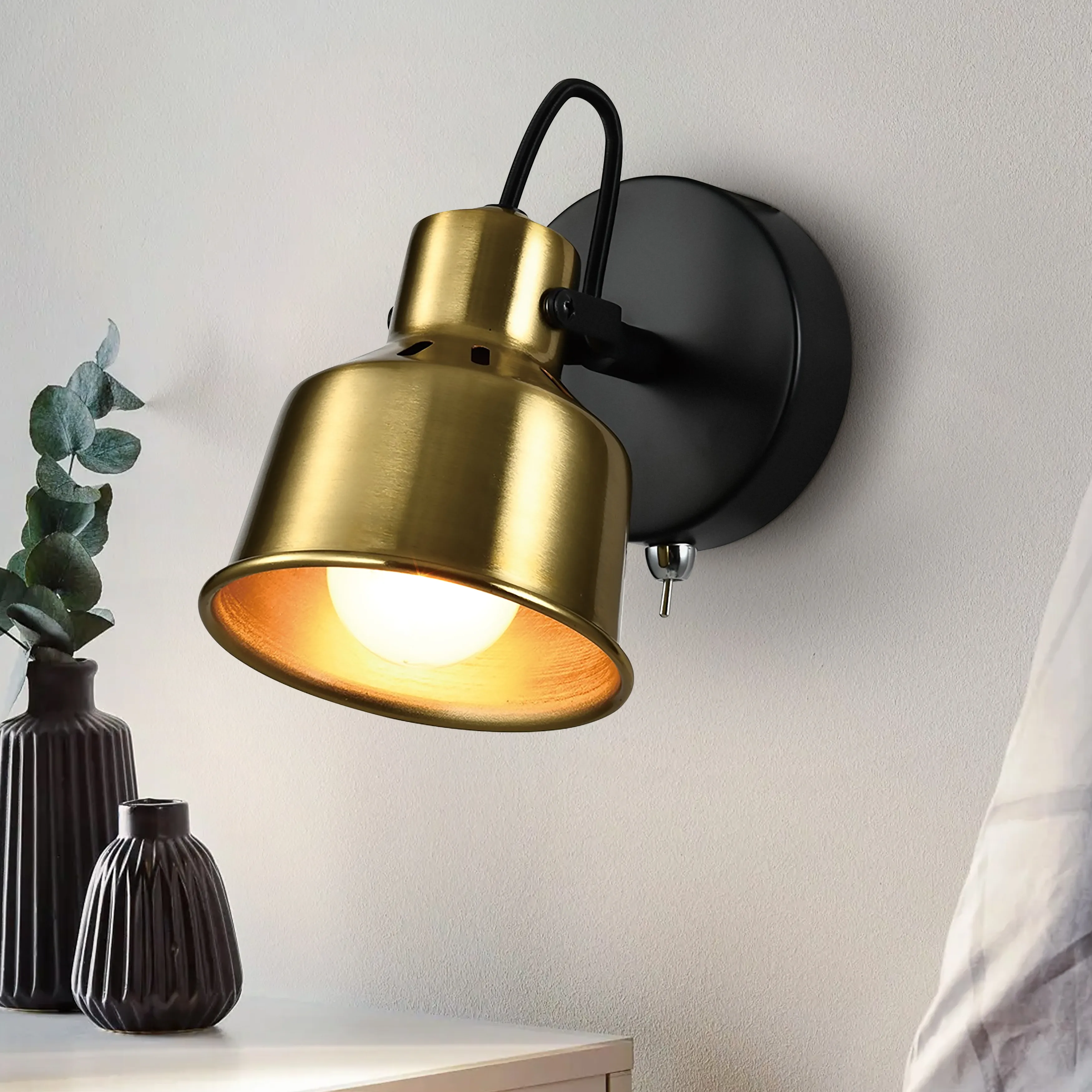 <p>Настенные светильники Rivoi Lenore из металла с окрашиванием в цвета - черный и латунь. Миниатюрный хромированный выключатель находится на корпусе бра. Настенные светильники Lenore от итальянского бренда Rivoli применяются с лампой Е14 40 Вт. Плафон золотого цвета с дизайном под индустриальный светильник установлен на поворотном держателе. С помощью поворотного спота Lenore Rivoli можно управлять подсветкой, регулируя направление светового потока. Наличие выключателя на корпусе бра - преимущество, дающее возможность применять дополнительное освещение без лишних выводов электропроводки. Светильник-бра накладной удобен в установке и использовании. Прочный легкий металл обеспечивает долговечность спота настенного и его стильный внешний вид. </p>