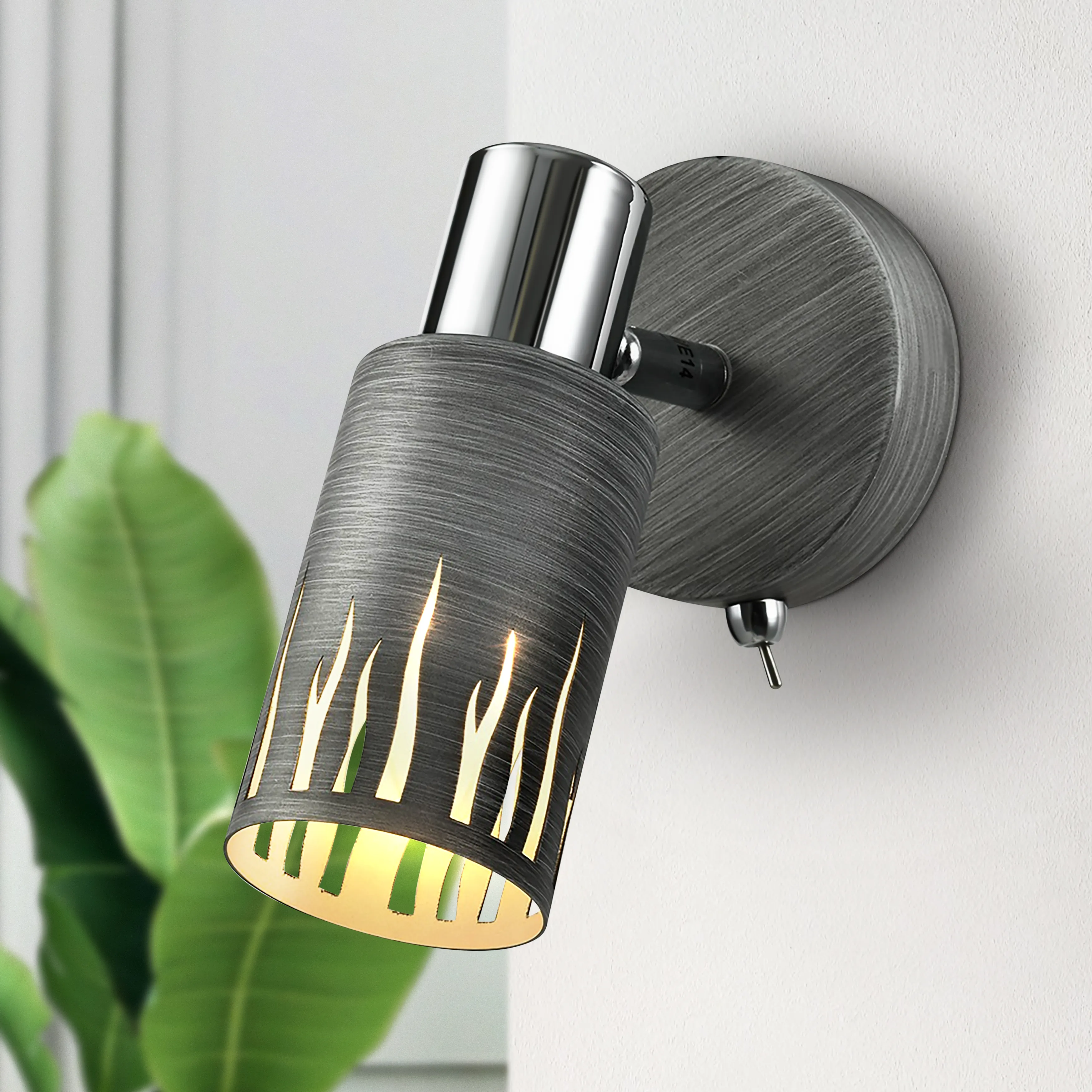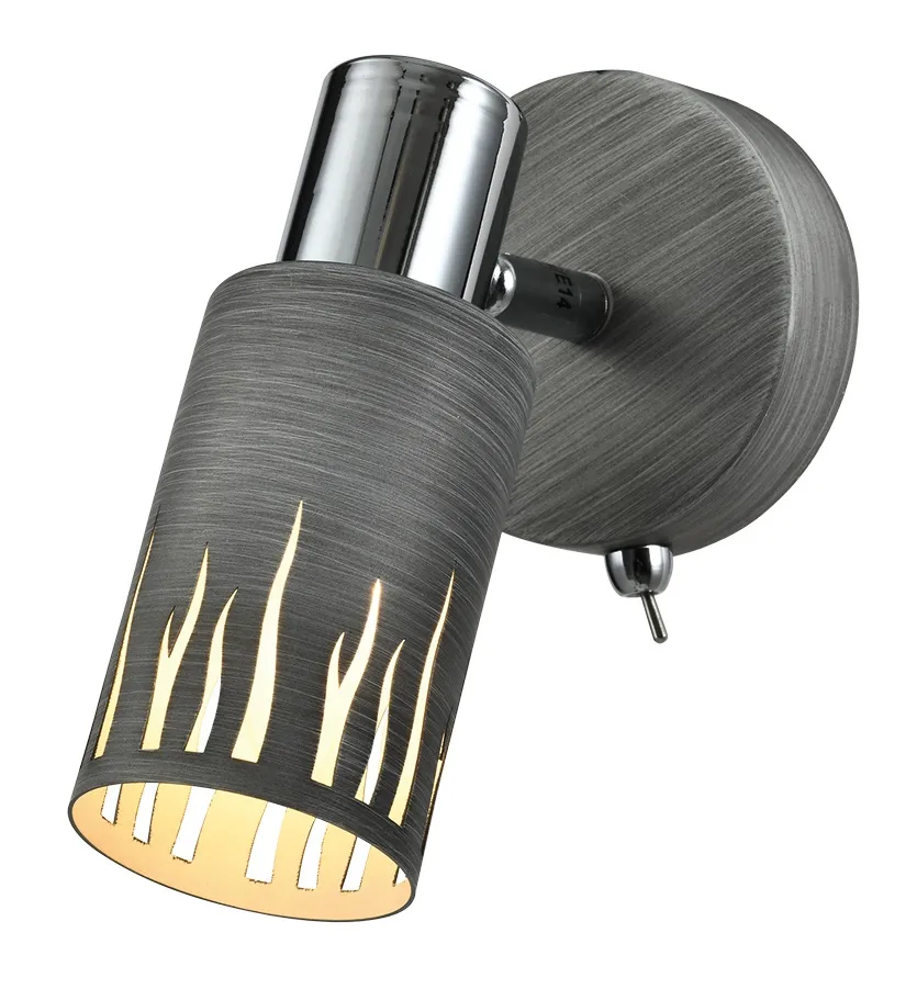 Спот металлический настенно-потолочный с перфорированными плафонами под лампу Е14 мощностью 40 Вт с выключателем на корпусе. Поворотный механизм у плафонов. Освещаемая площадь бра - 3 м2. Габариты светильника - 170*90*150 мм.