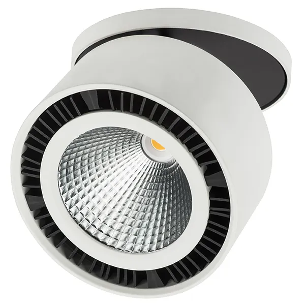 Врезное отверстие: d115 h22; Внешние габариты: D126, H80; Материал - основание/плафон: металл; Цвет-основание/плафон: белый; Лампа: LED 40W= 400W; Световой поток: 3400LM;  4000К ; Угол рассеивания: 30G;Транcформатор в комплекте
