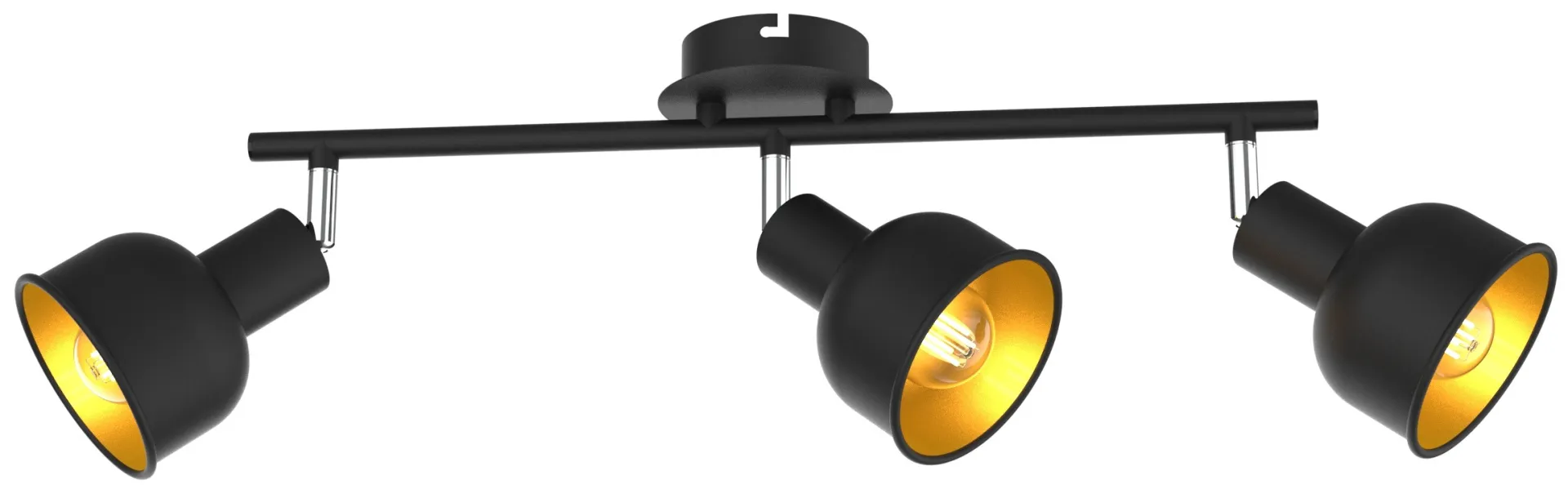 <p>Rivoli Jessica - настенно-потолочный спот с 3 трендовыми металлическими плафонами. Внешняя сторона плафонов имеет черное матовое покрытие, внутренняя - покрытие золотого цвета. Преимущество настенно-потолочных светильников Jessica - поворотная конструкция плафонов, которая дает возможность индивидуально регулировать направление светового потока каждого плафона.</p>