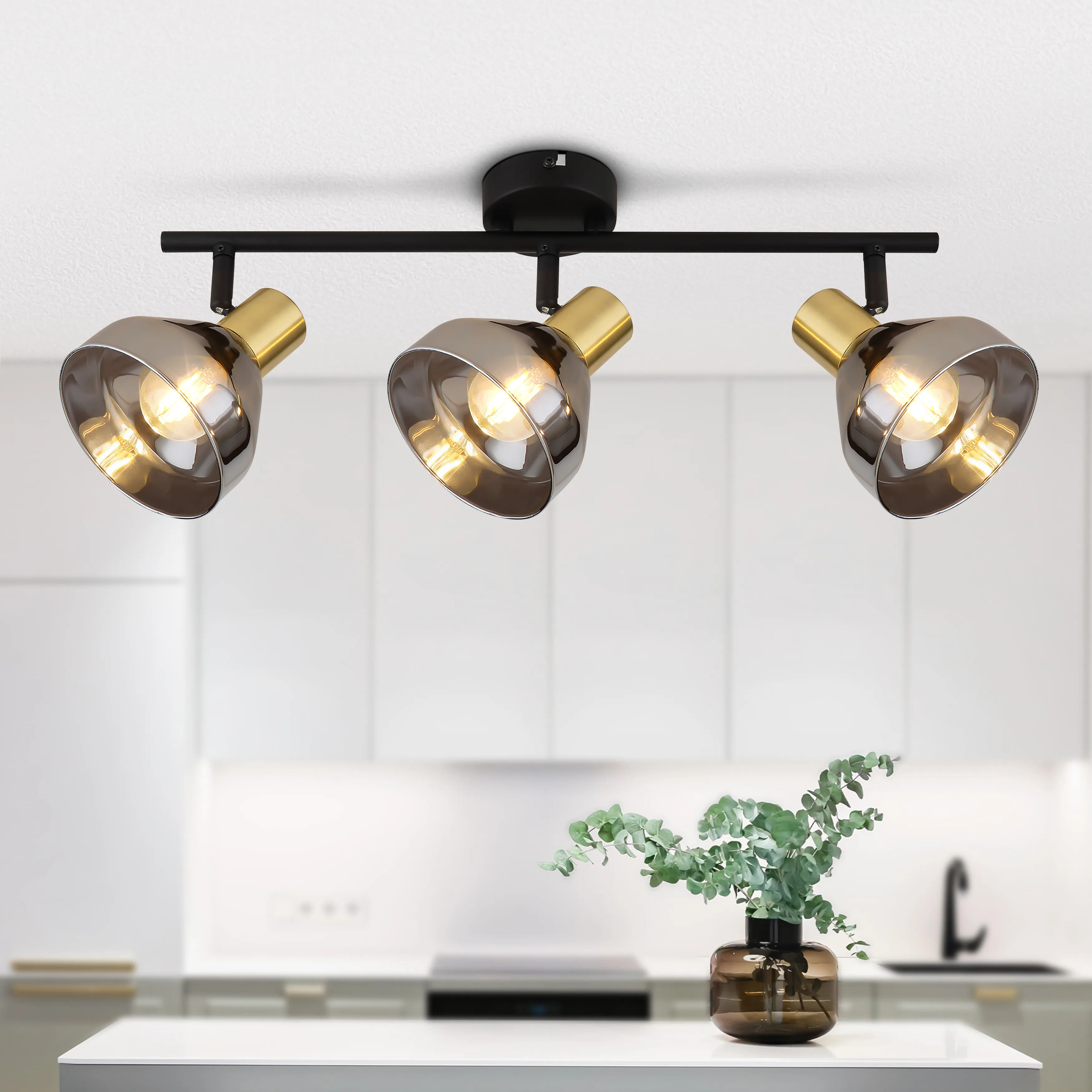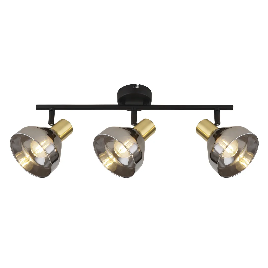 <p>Спот поворотный Rivoli Kinge (арт. 7036-703) под 3 лампы Е14 40 Вт. Изготовлен из металла и стекла. Позволяет регулировать направление каждого источника света, помогает зонировать пространство и организовать дополнительную подсветку. Настенно-потолочные светильники Kinge от итальянского бренда Rivoli имеют эффектный дизайн. Металлический корпус окрашен в модные цвета - латунь и черный. Стекло плафонов тонировано в красивый дымчатый оттенок и покрыто глянцем. Арматура спота потолочного Kinge прочная, выверенная и лаконичная. Размер - 455*80*160 мм.</p><p>Спот накладной Kinge стоит купить для пространств в популярных стилях лофт, модерн, кантри. Если вы ищете люстру на потолок или бра на стену, можно смело заказать эти универсальные настенно-потолочные светильники.</p><p>В дизайнерскую коллекцию Kinge также входят: спот настенно-потолочный на 3 лампы с закругленной арматурой (арт. 7036-733), споты на 2 лампы (арт. 7036-702), спот настенный на 1 лампу (арт. 7036-701).</p>