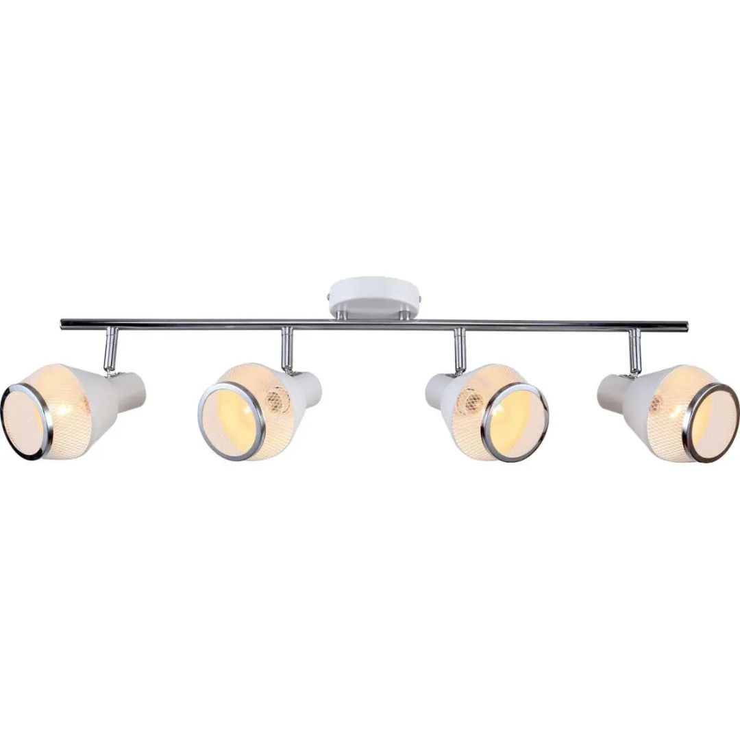 Спот настенно-потолочный из коллекции Vekta выполнен из металла, окрашенного в белый цвет. Отдельные элементы арматуры гальванизированы в цвет хрома. Металлические плафоны спота декорированы сеткой, окрашенной в белый цвет, и кантом, гальванизированным в цвет хрома. Плафоны имеют поворотный механизм.