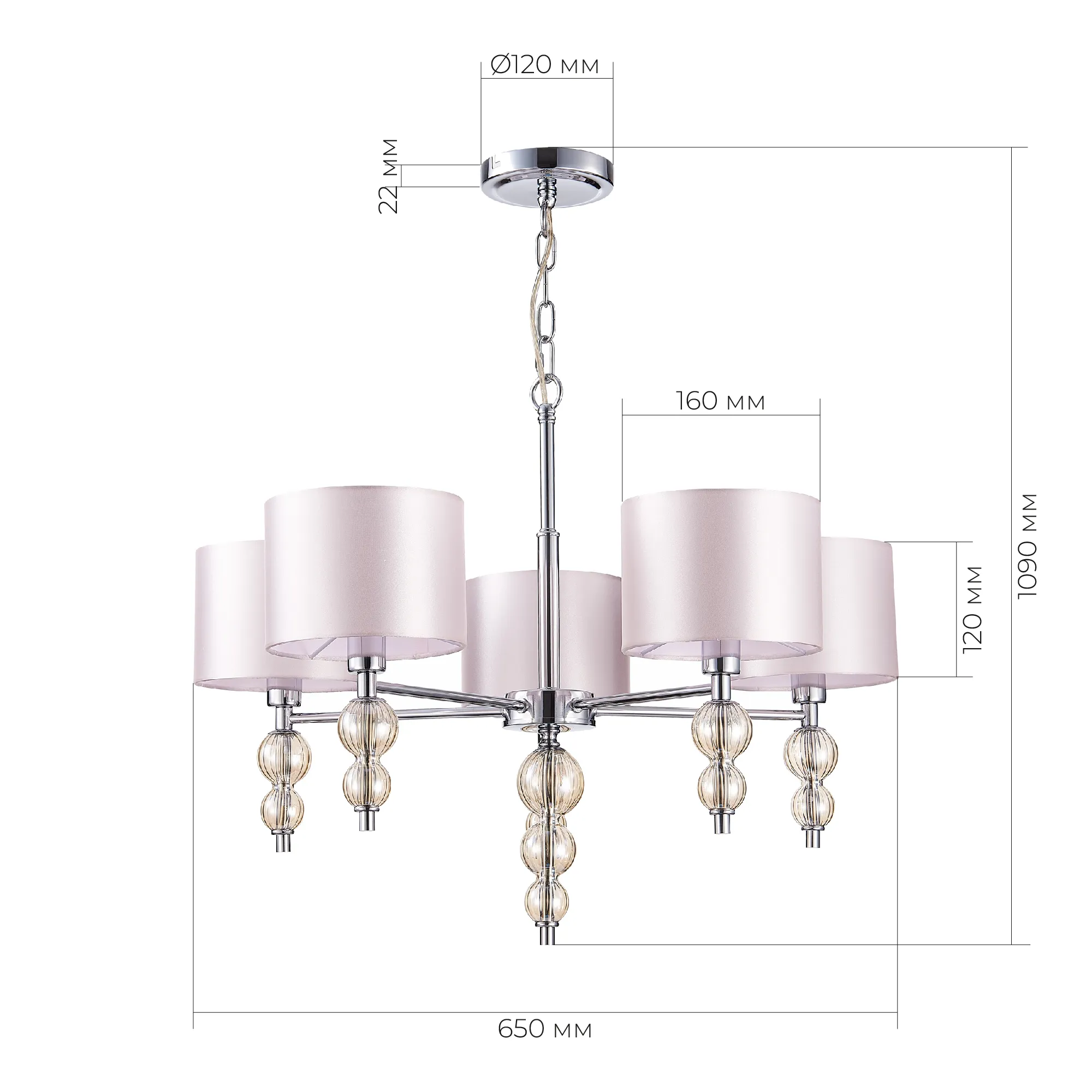 SLE105703-05 Светильник подвесной Хром/Светло-бежевый E14 5*40W RAMER