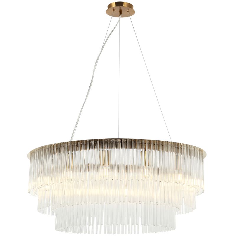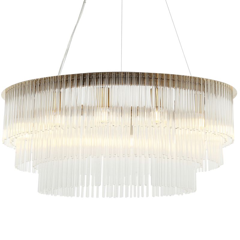 Люстра подвесная из коллекции Imposio выполнена из металла, гальванизированного в цвет бронзы. Декор из стеклянных прозрачных трубочек крепится на нержавеющую сталь, отполированную до зеркального блеска. Современная форма и высокое качество светильников идеально подойдут в современные и дизайнерские интерьеры.