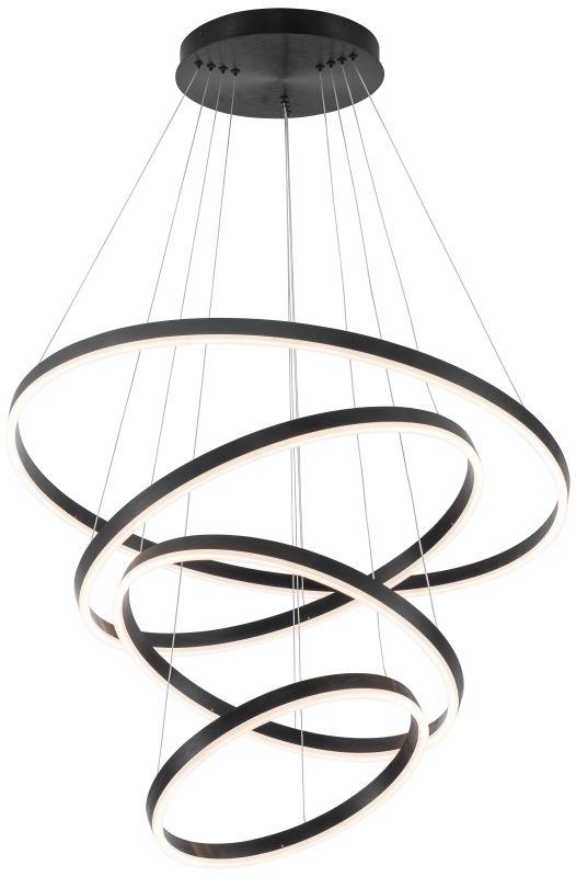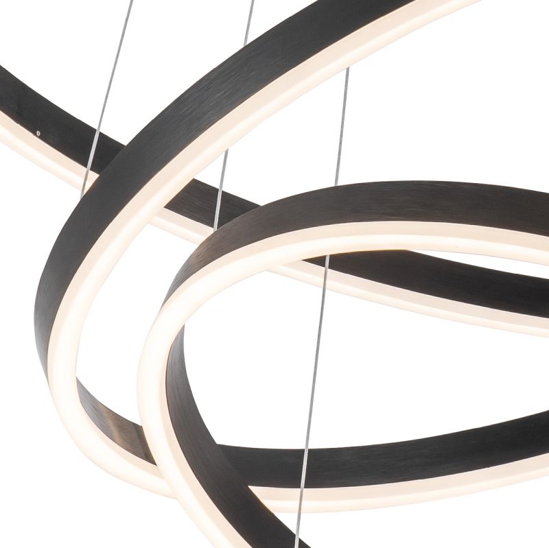 Люстра подвесная из коллекции Planetary имеет арматуру из сплава алюминия, обработанную по технологии брашинг, и анодированную в черный цвет. Светодиодные источники света закрыты белым матовым акрилом. Все модели коллекции Planetary комплектуются пультом дистанционного управления 2,4G и драйвером высокого качества с европейским сертификатом T?V.