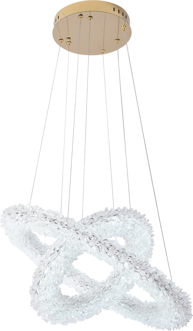 Люстра подвесная коллекции Felloria выполнена из нержавеющей стали золотого цвета и декорирована оригинальным стеклом. Модель коллекции комплектуется пультом дистанционного управления 2,4G и драйвером высокого качества. Пульт дистанционного управления обеспечивает переключение трех режимов световой температуры и диммирование.