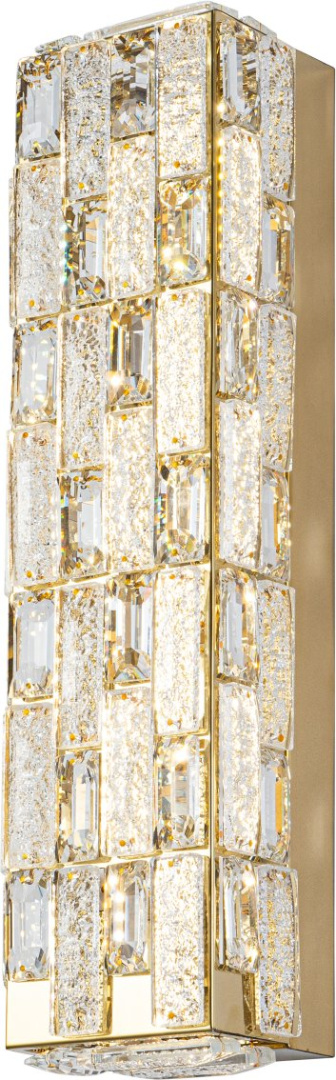 Светильник настенный эксклюзивной коллекции Gabbana выполнен из нержавеющей стали золотого цвета и декорирован текстурным хрусталем высшей категории. Модель комплектуется пультом дистанционного управления 2,4G и драйвером высокого качества европейского стандарта T?V, обеспечивающим переключение трех режимов световой температуры и диммирование. Современная форма и высокое качество светильников идеально подойдут как в классические, так и современные интерьеры. Из данной коллекции светильников можно сделать индивидуальный заказ любого цвета и размера.