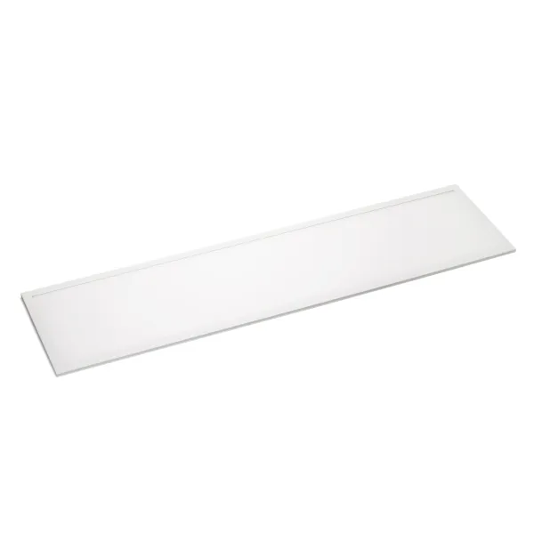 Светодиодная панель с торцевой заcветкой. Мощность 40 Вт, св. поток 3880 лм, 97 лм/Вт, дневной 4000 K, CRI>80, угол 120°, напряжение питания 230 В. Белый квадратный корпус из алюминия, экран PS, LGP PMMA, степень защиты IP40. Размер (Д×Ш×В) 1195×295×10,4 мм. Монтаж встраиваемый, установочное отверстие длина 1175 мм, ширина 275 мм. Драйвер 27-38 В, 1050 мА, пульсация <5%.