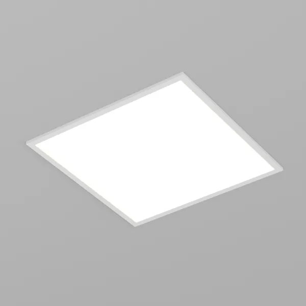 Светодиодная панель с торцевой засветкой. Мощность 40 Вт, св. поток 4240 лм, 106 лм/Вт, белый 6000-7500 K, CRI>80, угол 120°, напряжение питания 230 В. Белый квадратный корпус из алюминия, экран PS, LGP PMMA, степень защиты IP40. Размер (Д×Ш×В) 595×595×10,4 мм. Монтаж встраиваемый, установочное отверстие длина 575 мм, ширина 575 мм.. Драйвер 27-38 В, 1050 мА, пульсация <5%.