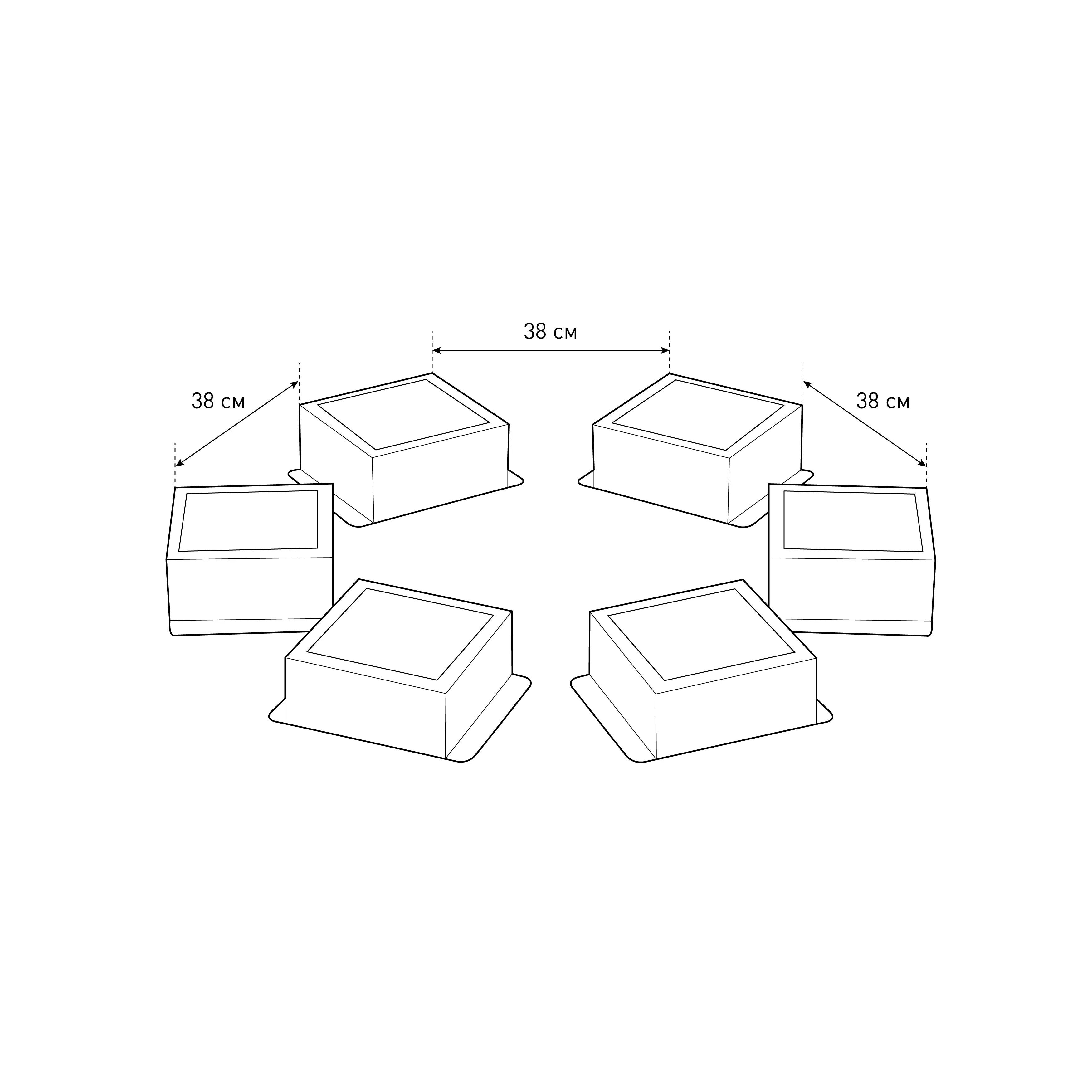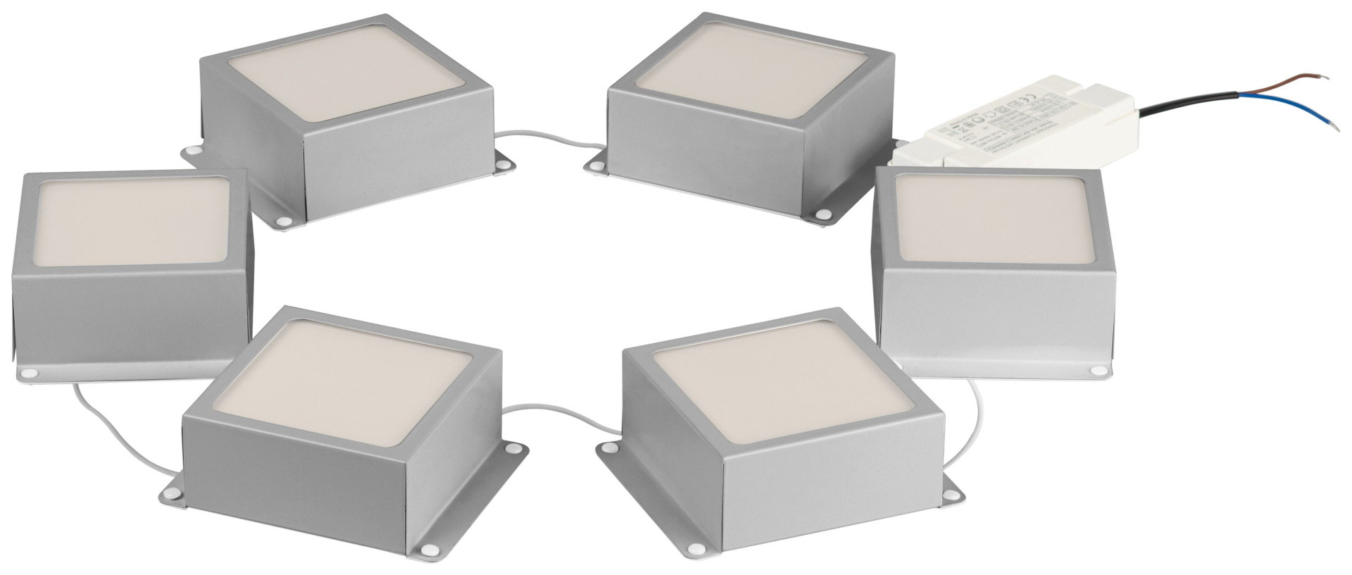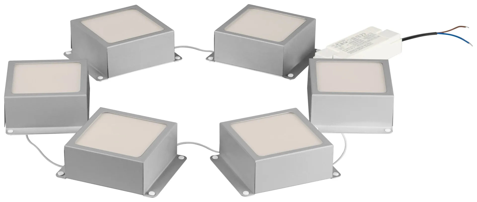 Светильники типа домино. Предназначены для монтирования в потолки Грильято с ячейками 100х100 и 50х50. Расстояние между кубиками - 38 см