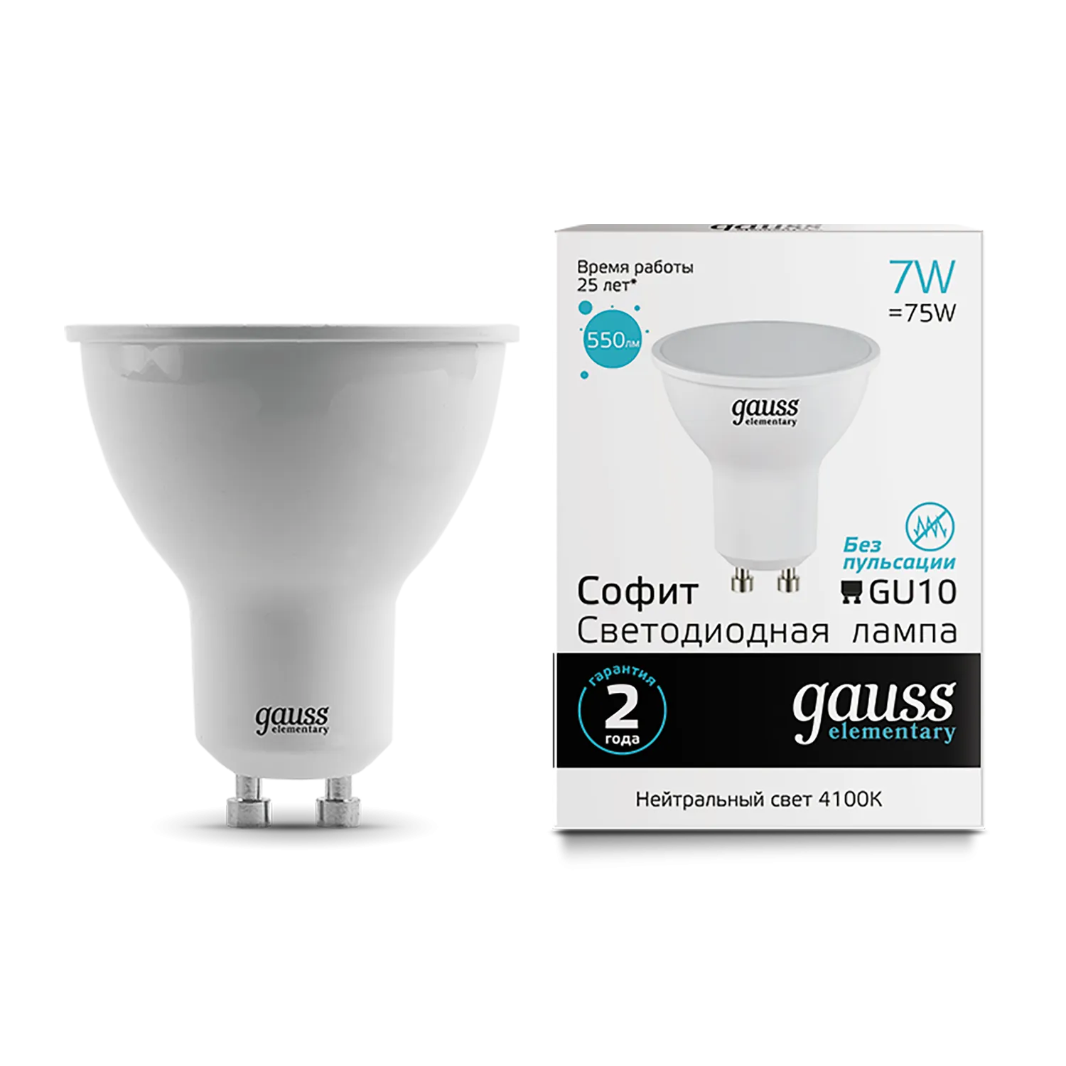 Лампа светодиодная Gauss GU10 7W 4100K матовая 13627