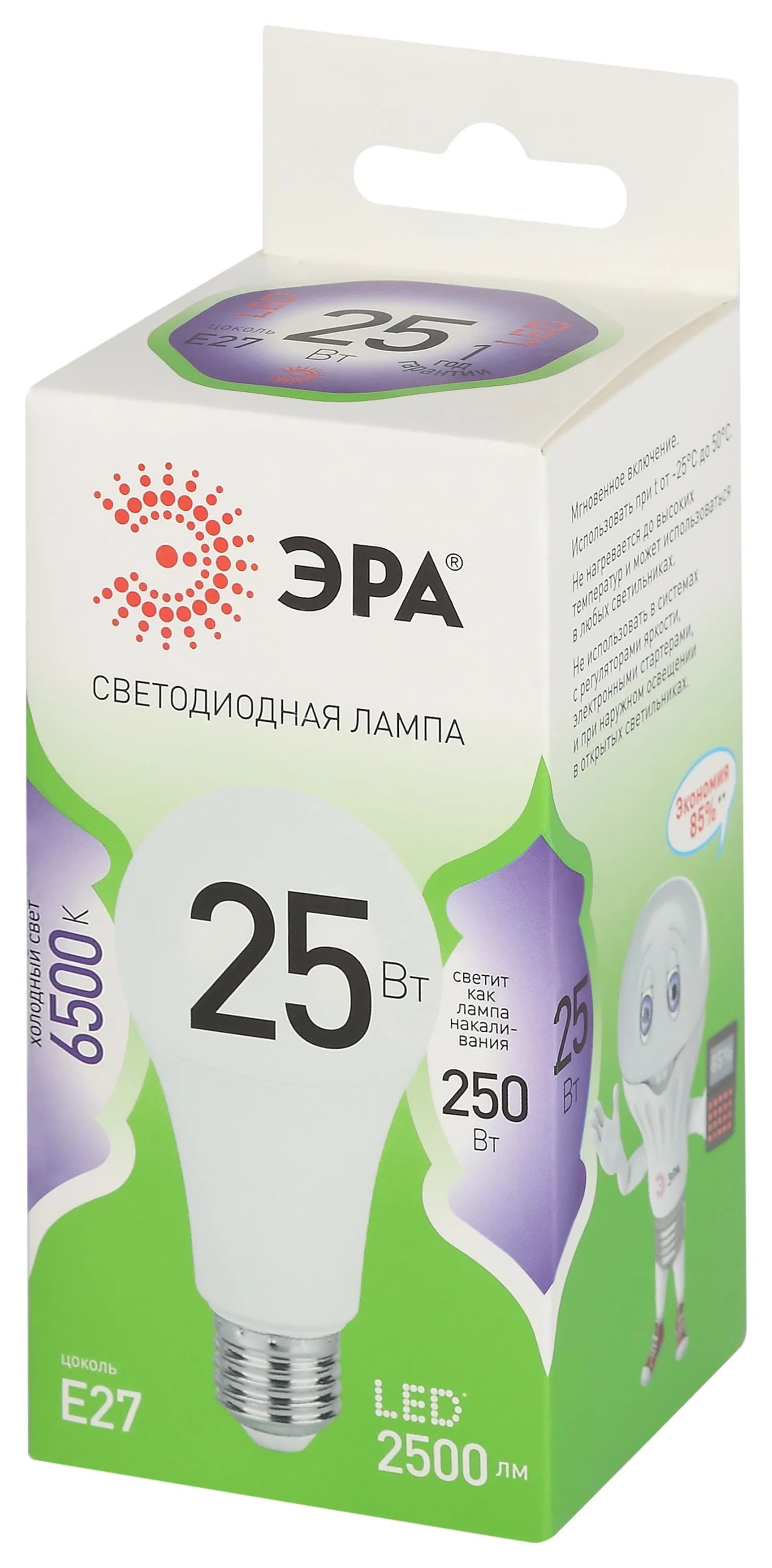 Светодиодная лампа ЭРА LED A60-25W-865-E27 GL серии Green Line — эффективное решение для основного освещения. Лампочка Е27 мощностью 25 Вт излучает холодный белый свет (6500K) без мерцания. Классическая колба A60 (груша) и стандартный цоколь E27 делают её совместимой с люстрами, бра, настольными и напольными светильниками. Высота лампы: 108 мм. Светодиоды потребляют меньше электроэнергии и служат значительно дольше традиционных ламп накаливания: до 30 000 часов. Работает от сети 220 В, эквивалентна 80 Вт лампе накаливания. Светодиодные лампы ЭРА подходят для жилых и коммерческих помещений и обеспечивают стабильное освещение.