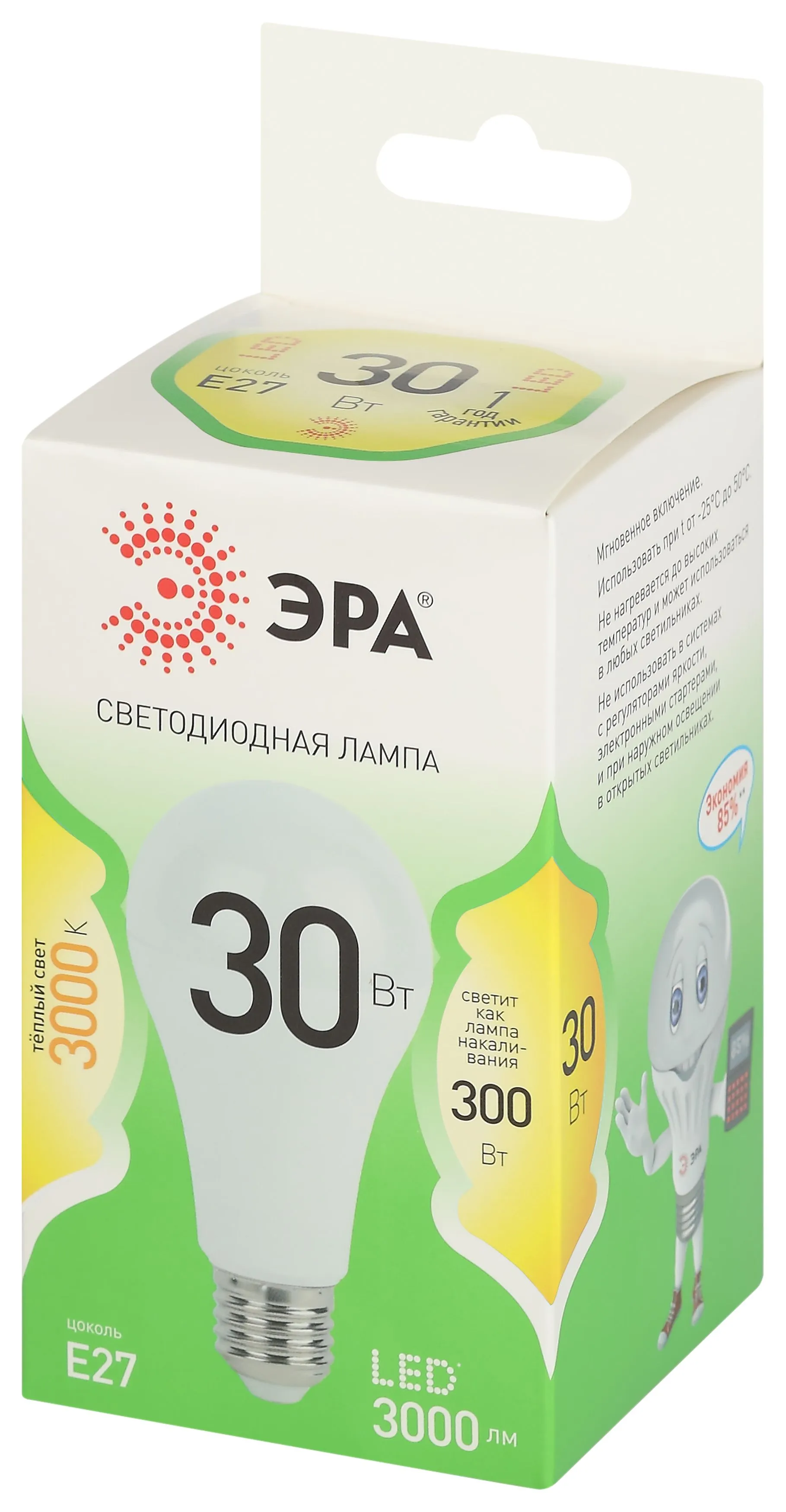 Светодиодная лампа ЭРА LED A65-30W-830-E27 GL серии Green Line — это мощный и энергоэффективный источник света, заменяющий традиционные лампы накаливания. Лампочка с цоколем E27 и потребляемой мощностью 30 Вт излучает теплый белый свет (3000K) без мерцания. Увеличенная форма A65 (груша) и стандартный цоколь E27 позволяют использвать лампу в люстрах, потолочных светильниках, торшерах и бра. Высота лампы: 130 мм. Работает от сети 220 В, эквивалентна 300 Вт лампе накаливания. Светодиодные лампы ЭРА отличаются высокой яркостью, долгим сроком службы и низким энергопотреблением. Идеально подходят для освещения жилых, офисных и коммерческих помещений. Не нагреваются и устойчивы к перепадам напряжения.