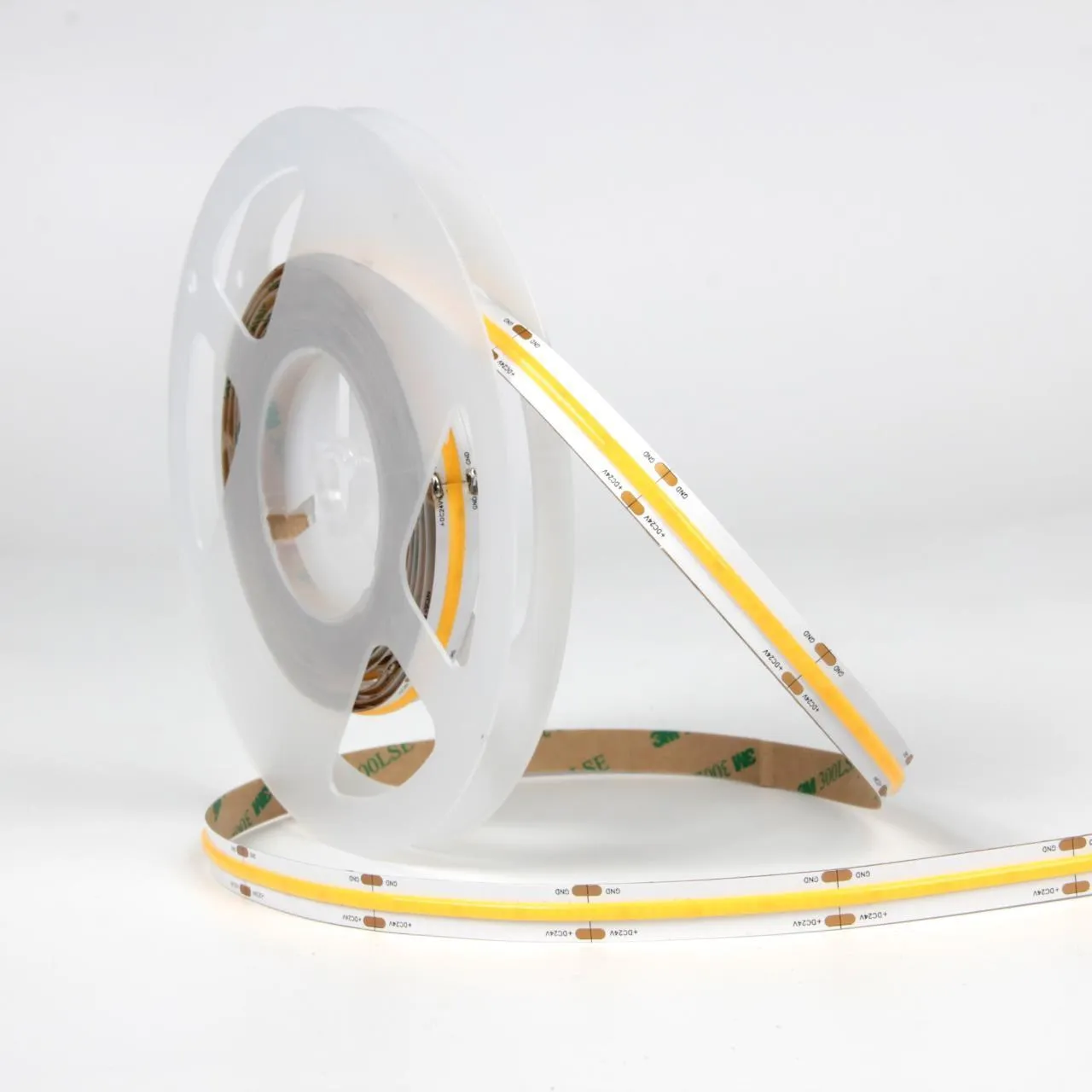 Лента с использованием COB светодиодов. Данная лента допускает ее использование без рассеивателя. За счет более высокой плотности светодиодов и равномерного покрытия люминофора свет распростра няется равномерно. Ленты с индексом защиты IP65 отлично подойдут для установки в сан-узлах и на улице под навесом.