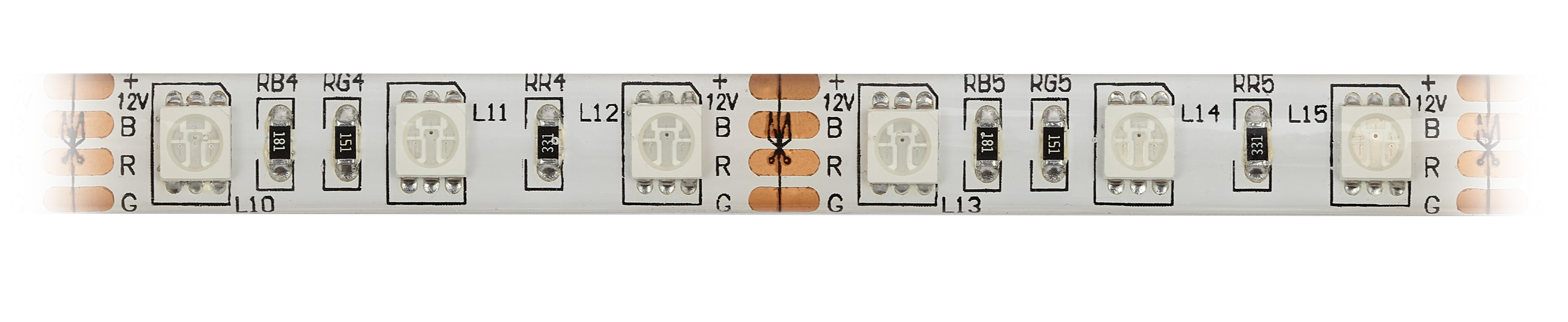 Светодиодная лента LS5050-14,4-60-12-RGB-IP65-1 year-5m со степенью защиты от пыли и влаги IP65 - современный способ создания внутреннего освещения, подсветки ниш, лестничного пространства, систем хранения, а также декоративного и художественного оформления любых объектов и форм в помещениях с повышенным уровнем влажности и уличного освещения. Легко и быстро устанавливается на любой гладкой поверхности с помощью скотча, расположенного на оборотной стороне ленты. Используя алюминиевый профиль, можно создавать необычные и функциональные решения освещения в Вашем интерьере. Рабочее напряжение ленты составляет 12 В, а мощность равна 14,4 Вт/м. Светодиодная лента обладает - цветом свечения RGB(625/520/465нМ).