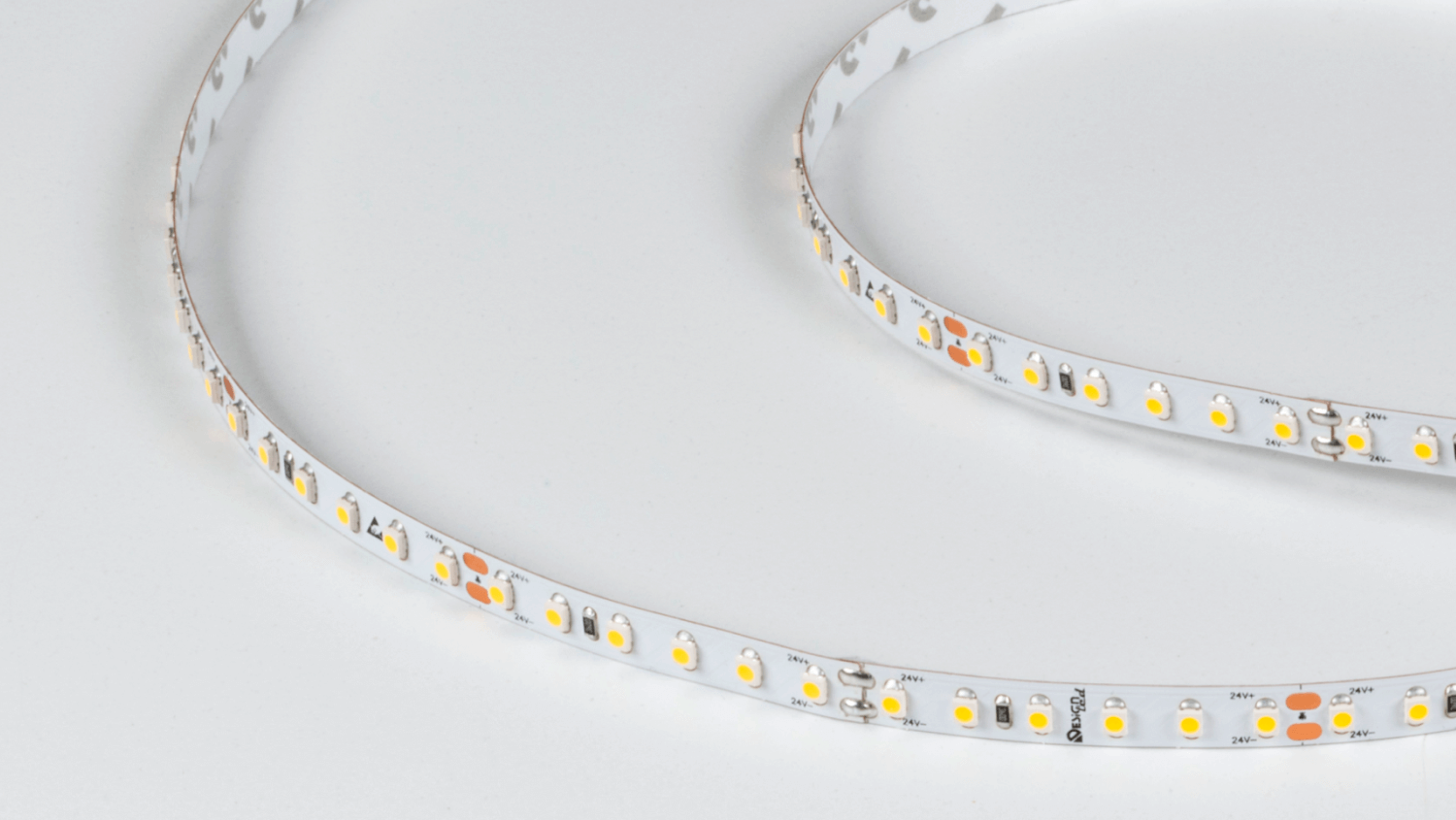 Светодиодная лента LUX, 3528, 120 LED/м, 9,6 Вт/м, 24В, IP33, Теплый белый (3000K), DSG3120-24-WW3-33