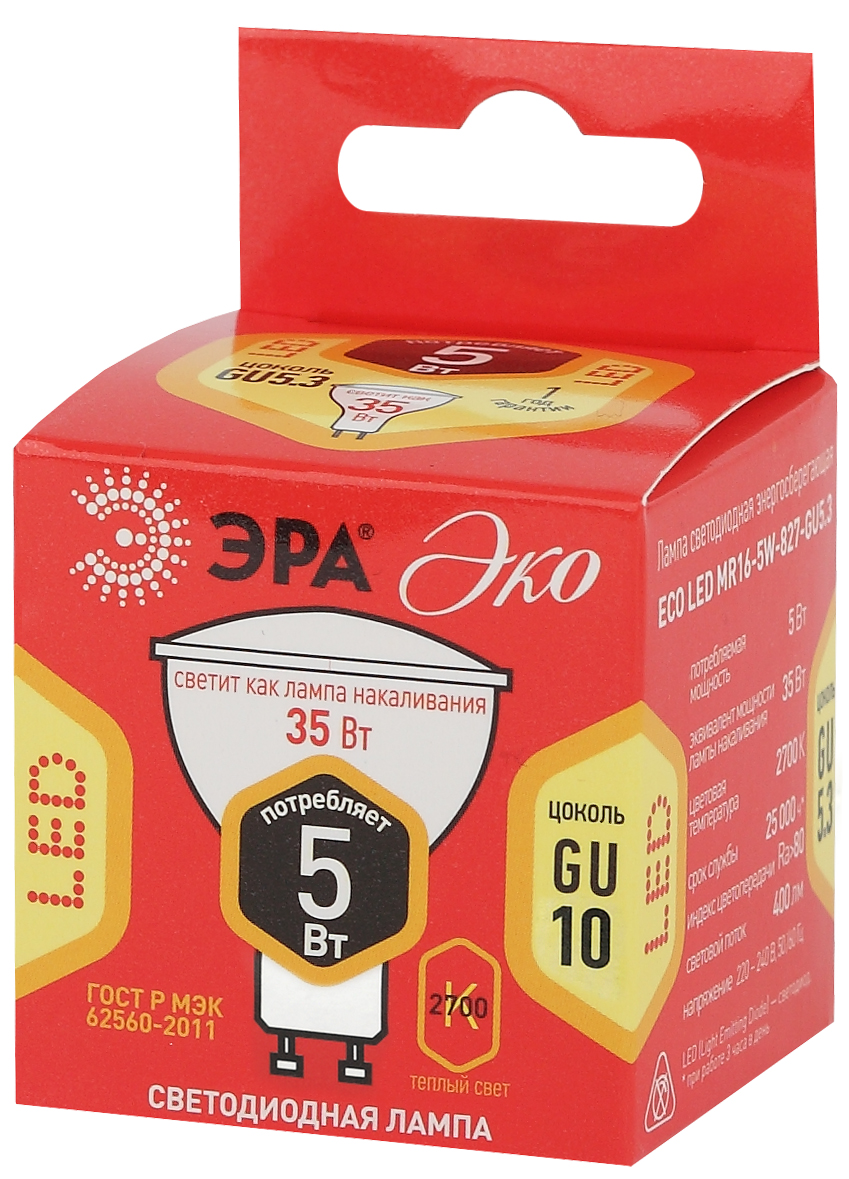 Лампочка светодиодная эра eco led mr16-5w-827-gu10 б0019062