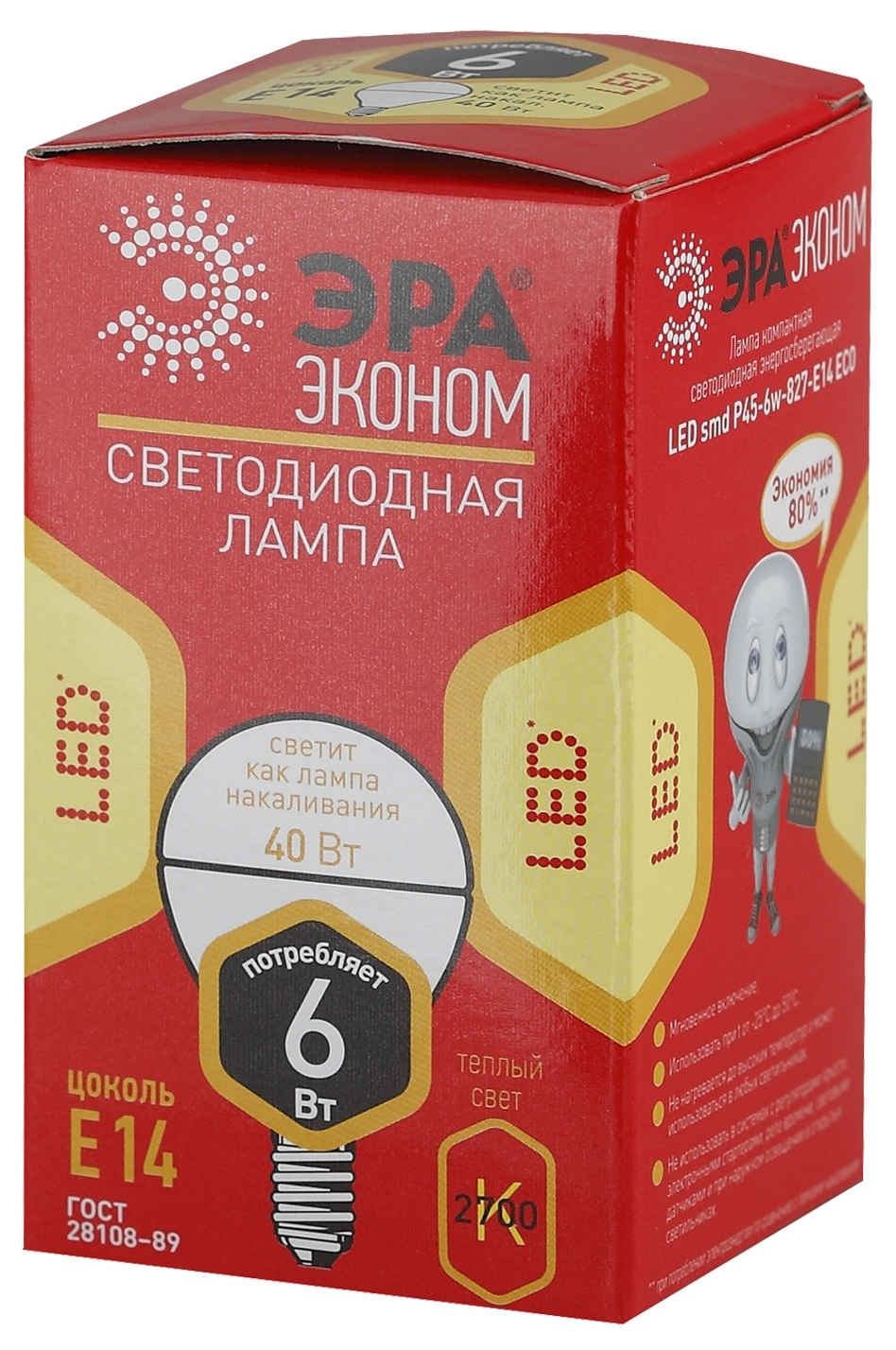 Лампочка светодиодная эра eco led p45-6w-827-e14 б0020626