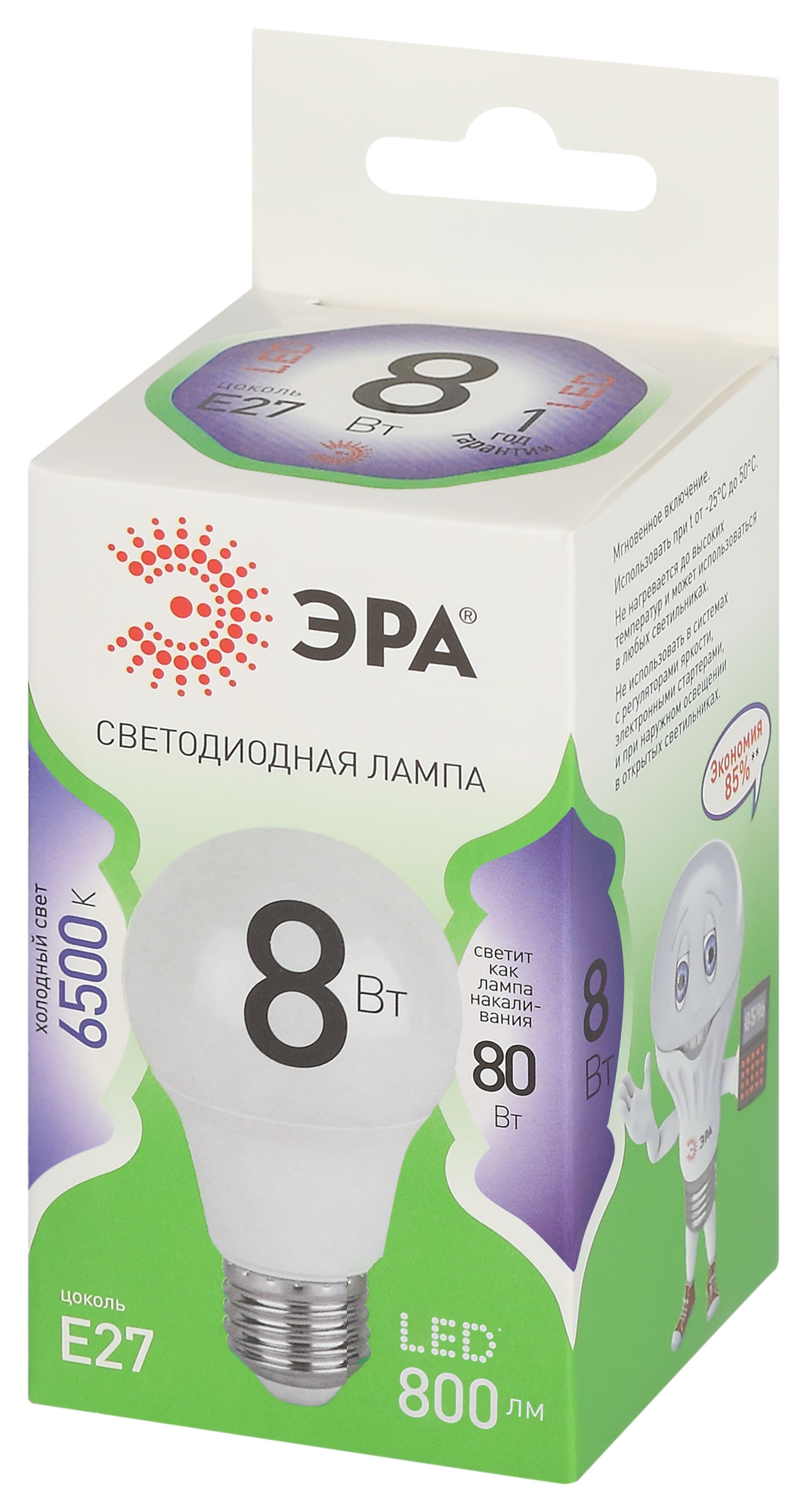Светодиодная лампа ЭРА LED A60-8W-865-E27 GL серии Green Line — эффективное решение для основного освещения. Лампочка Е27 мощностью 8 Вт излучает холодный белый свет (6500K) без мерцания. Классическая колба A60 (груша) и стандартный цоколь E27 делают её совместимой с люстрами, бра, настольными и напольными светильниками. Высота лампы: 108 мм. Светодиоды потребляют меньше электроэнергии и служат значительно дольше традиционных ламп накаливания: до 30 000 часов. Работает от сети 220 В, эквивалентна 80 Вт лампе накаливания. Светодиодные лампы ЭРА подходят для жилых и коммерческих помещений и обеспечивают стабильное освещение. |
