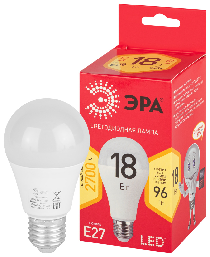 Лампочка светодиодная эра led a65-18w-827-e27 r б0051850