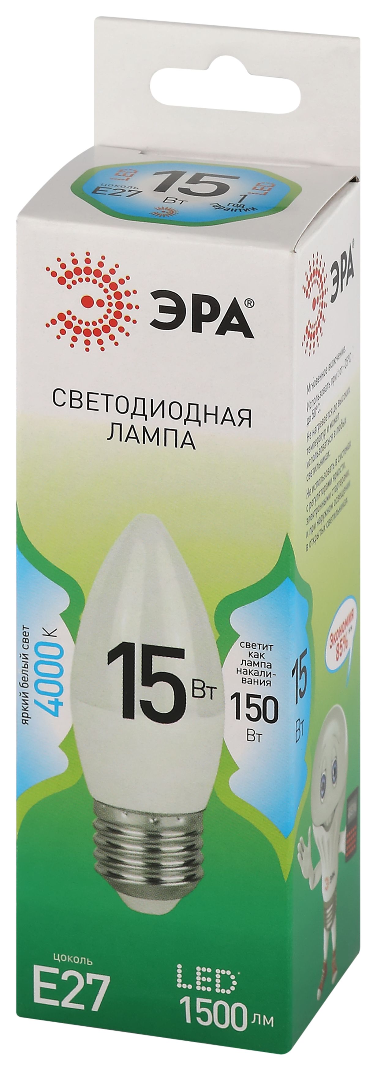 | Светодиодная лампа ЭРА LED B35-15W-840-E27 GL серии Green Line — это яркий и экономичный источник света, заменяющий лампы накаливания. Лампочка с цоколем Е27 и мощностью 15 Вт излучает нейтральный белый свет (4000K) без мерцания. Элегантная форма B35 (свеча) и стандартный цоколь E27 позволяют использвать лампу в люстрах, бра, настольных и декоративных светильниках. Высота лампы: 110 мм. Работает от сети 220 В, эквивалентна 150 Вт лампе накаливания. Светодиодные лампы ЭРА потребляют минимум энергии и не нагреваются. Подходят для дома, гостиниц, ресторанов и коммерческих помещений, сочетая стиль и функциональность. |