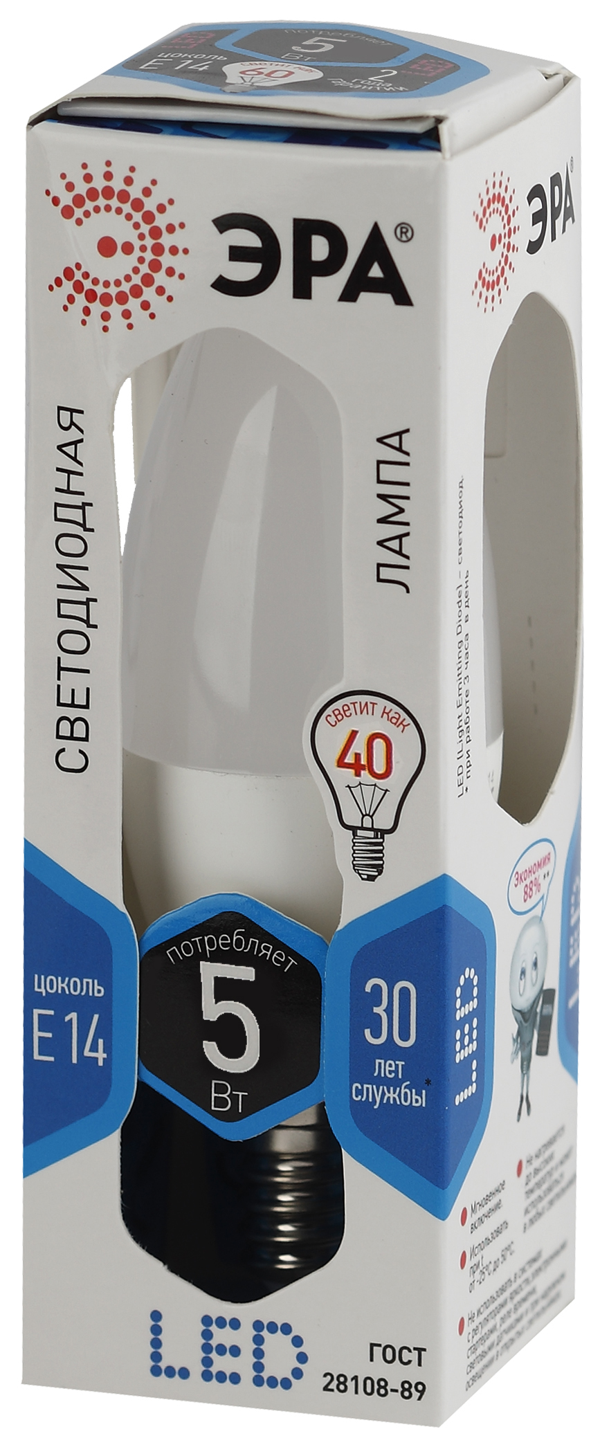 Лампочка светодиодная эра led b35-5w-840-e14 б0018872