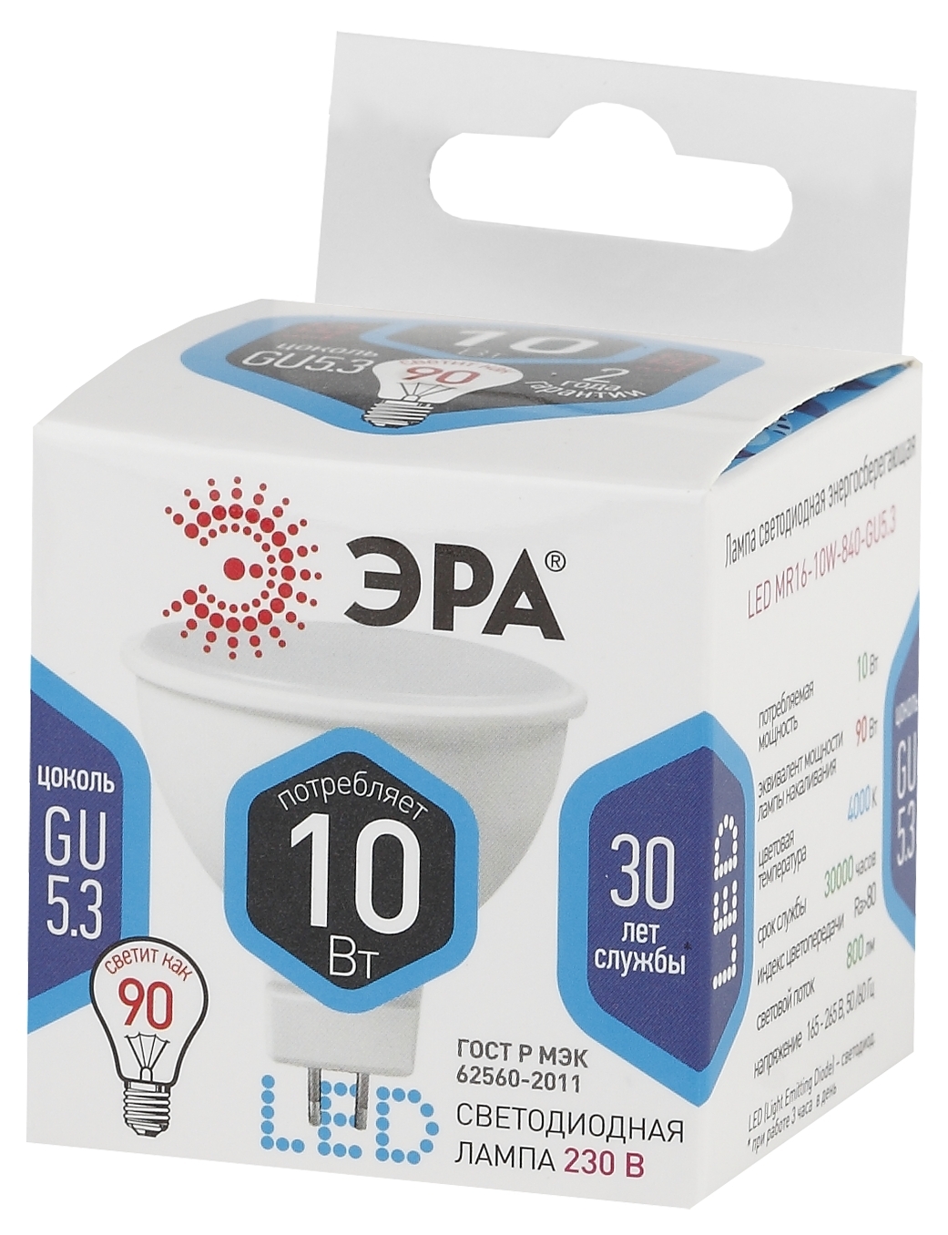 Лампочка светодиодная эра led mr16-10w-840-gu5.3 б0032996