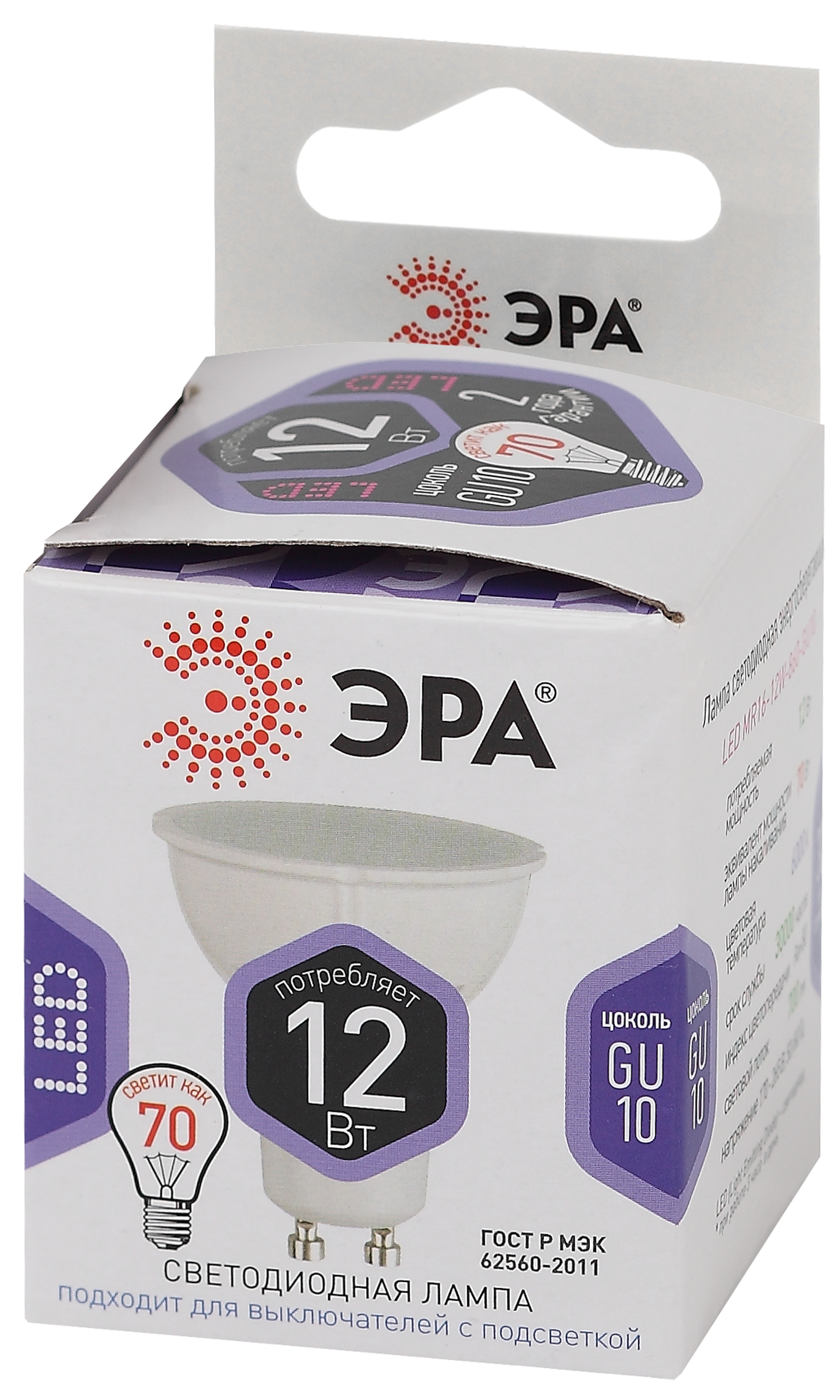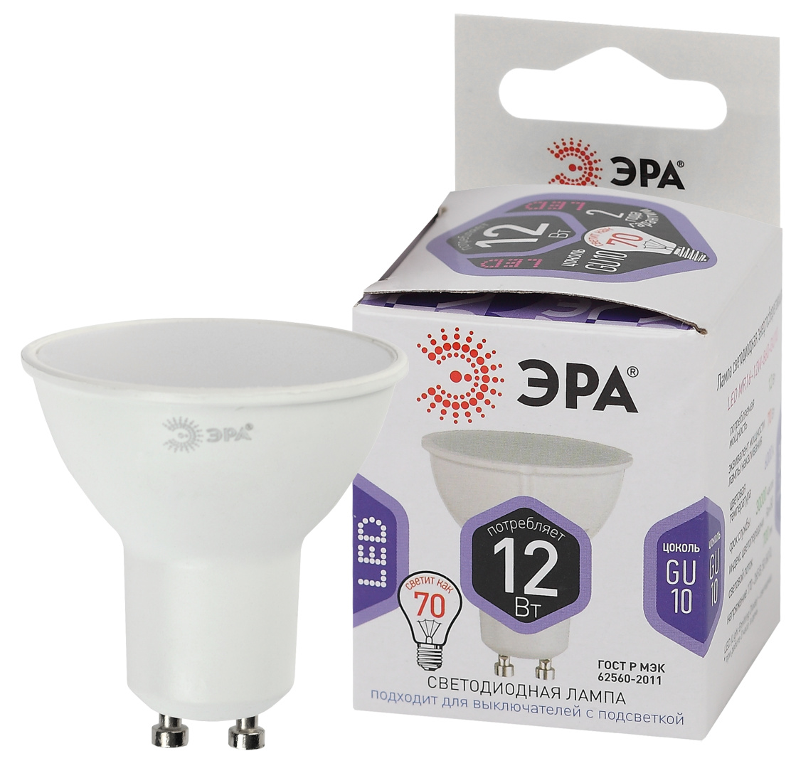 Лампочка светодиодная эра led mr16-12w-860-gu10 б0049076