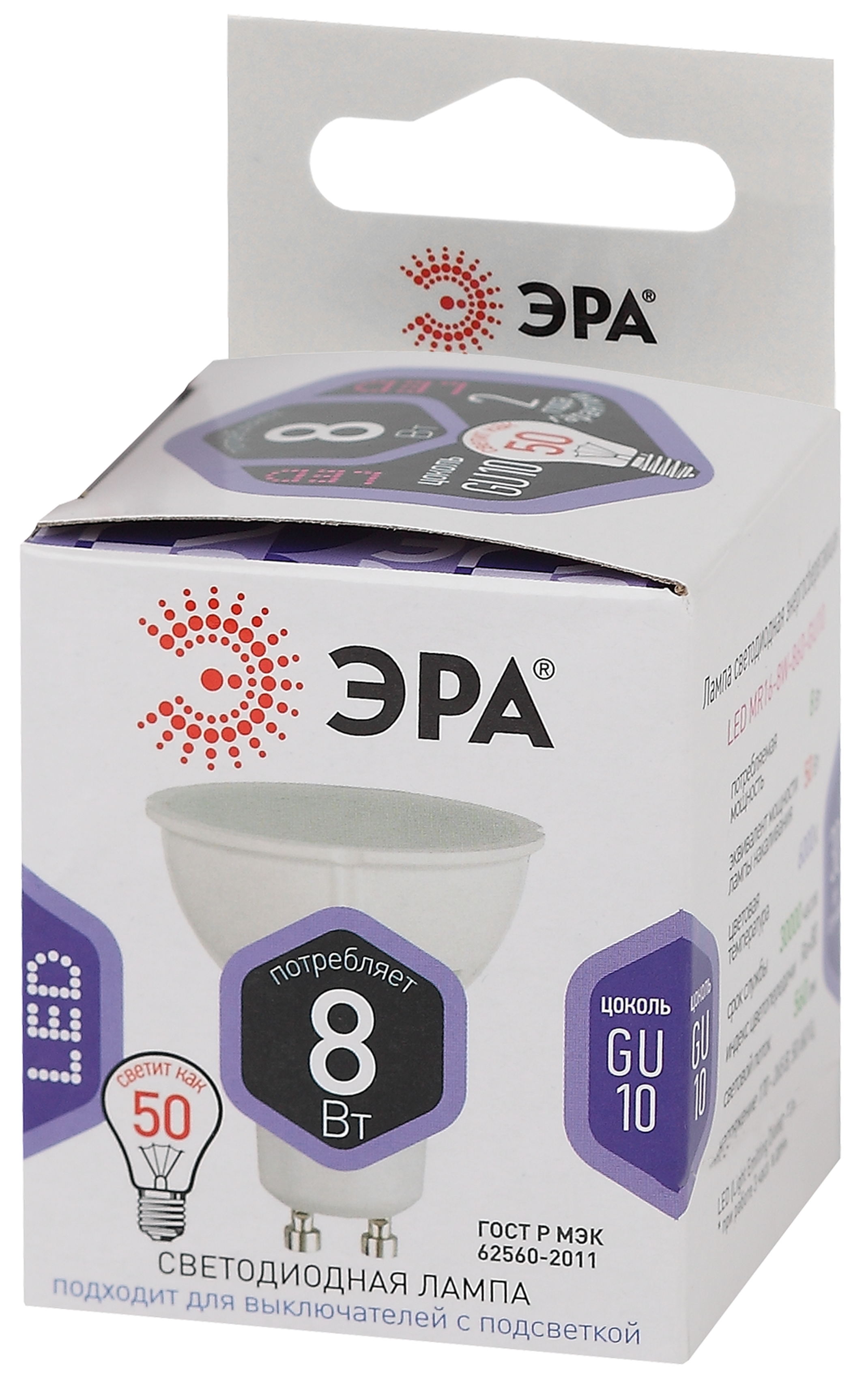 Лампочка светодиодная эра led mr16-8w-860-gu10 б0049072