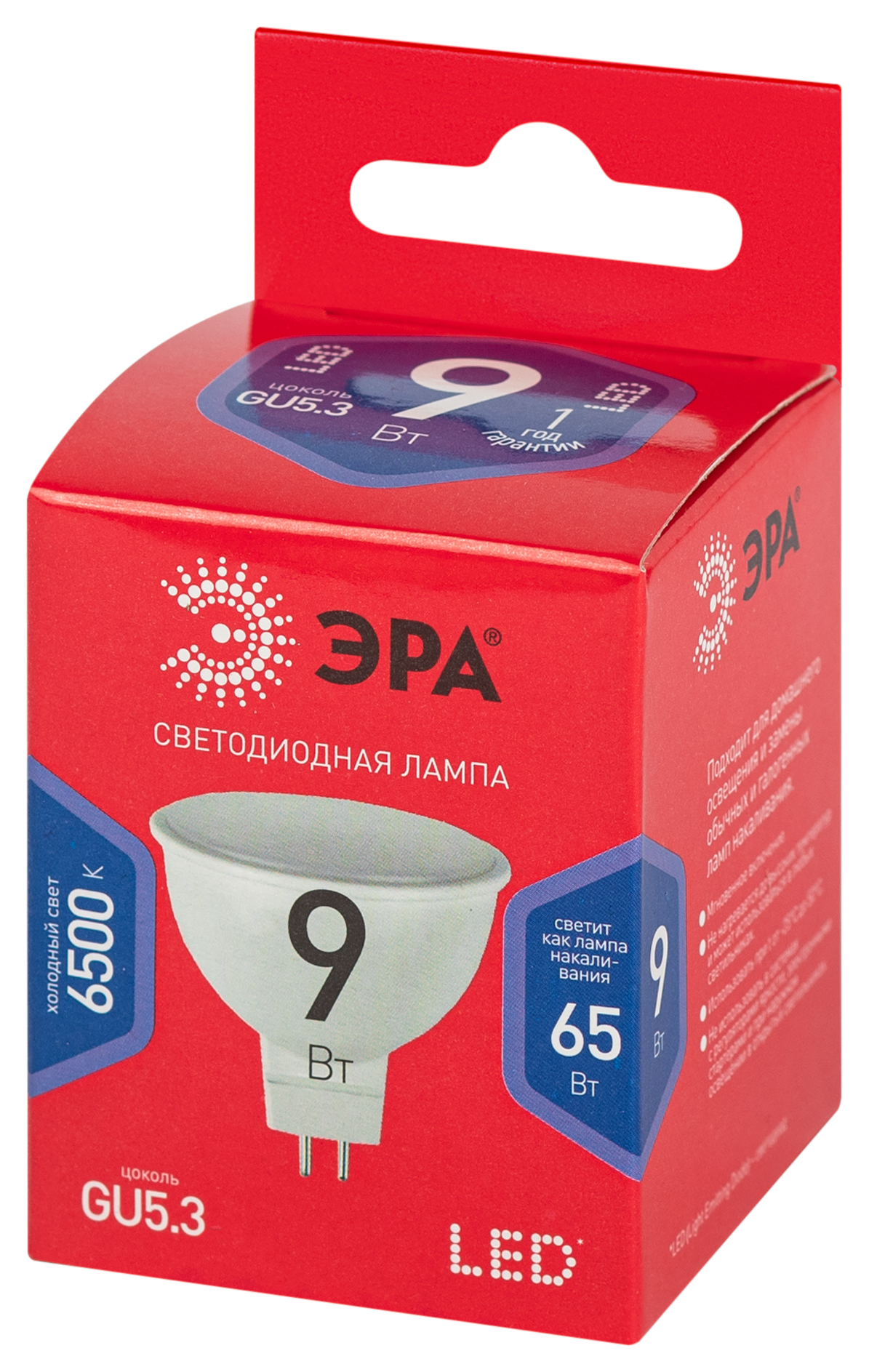 Лампочка светодиодная эра led mr16-9w-865-gu5.3 r б0045353