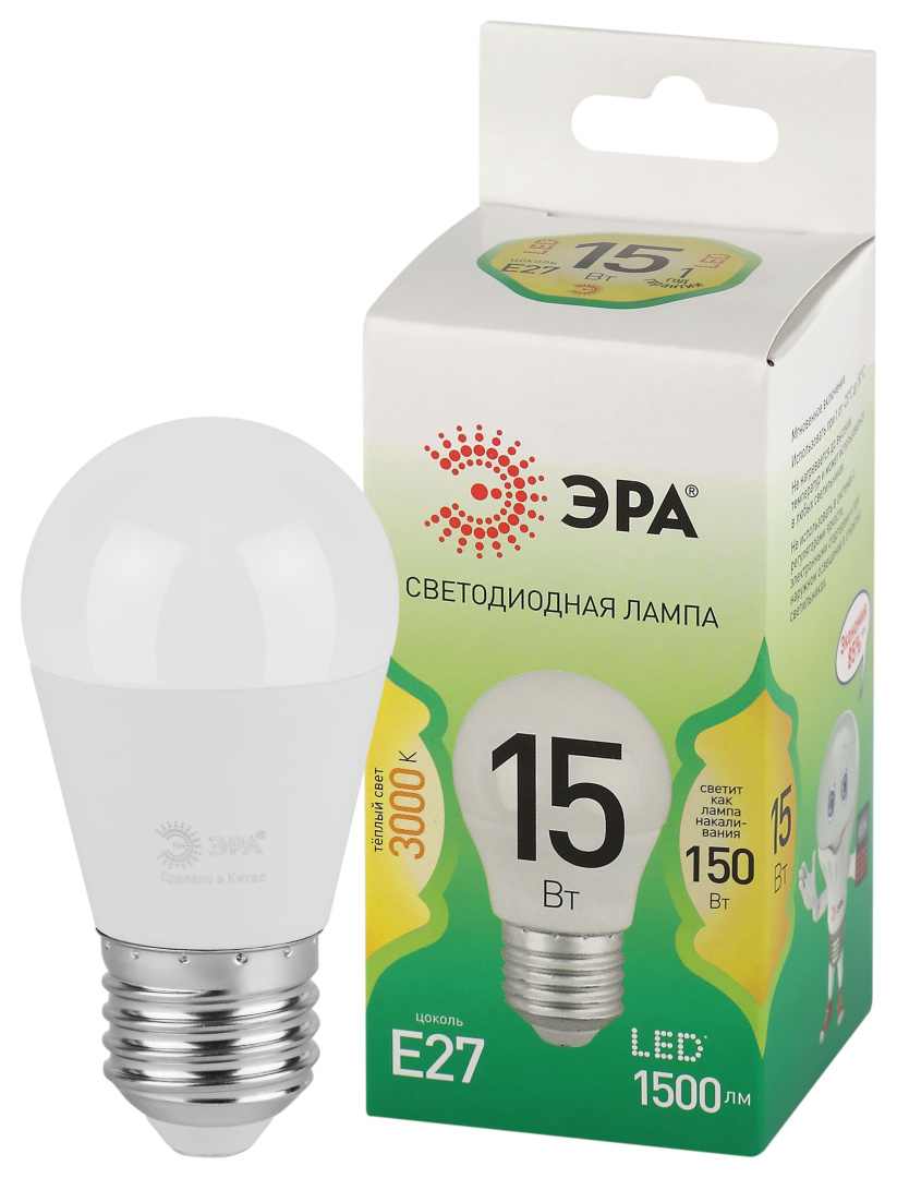 Лампочка светодиодная эра led p45-15w-830-e27 gl б0067038