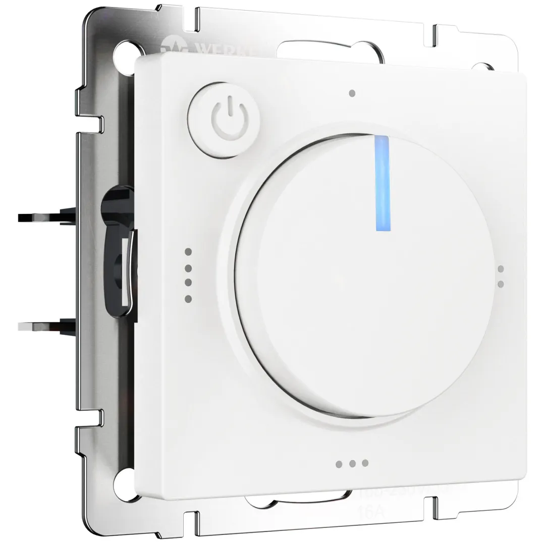 Совместимый со всеми рамками Werkel™ терморегулятор оснащен светодиодной индикацией режимов работы. Максимальная температура нагрева составляет 50°C. Включение красного светодиода сигнализирует о процессе нагрева. При достижении заданной температуры включается синяя подсветка.