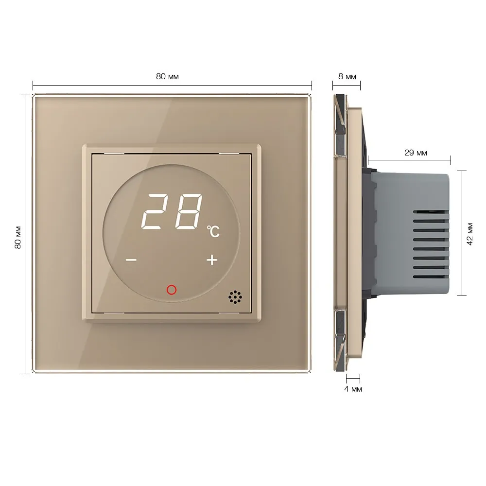 Умный терморегулятор пола Livolo EC 16А, сенсорное управление, датчик воздуха, датчик пола 5 метров, 1 пост, цвет золотой