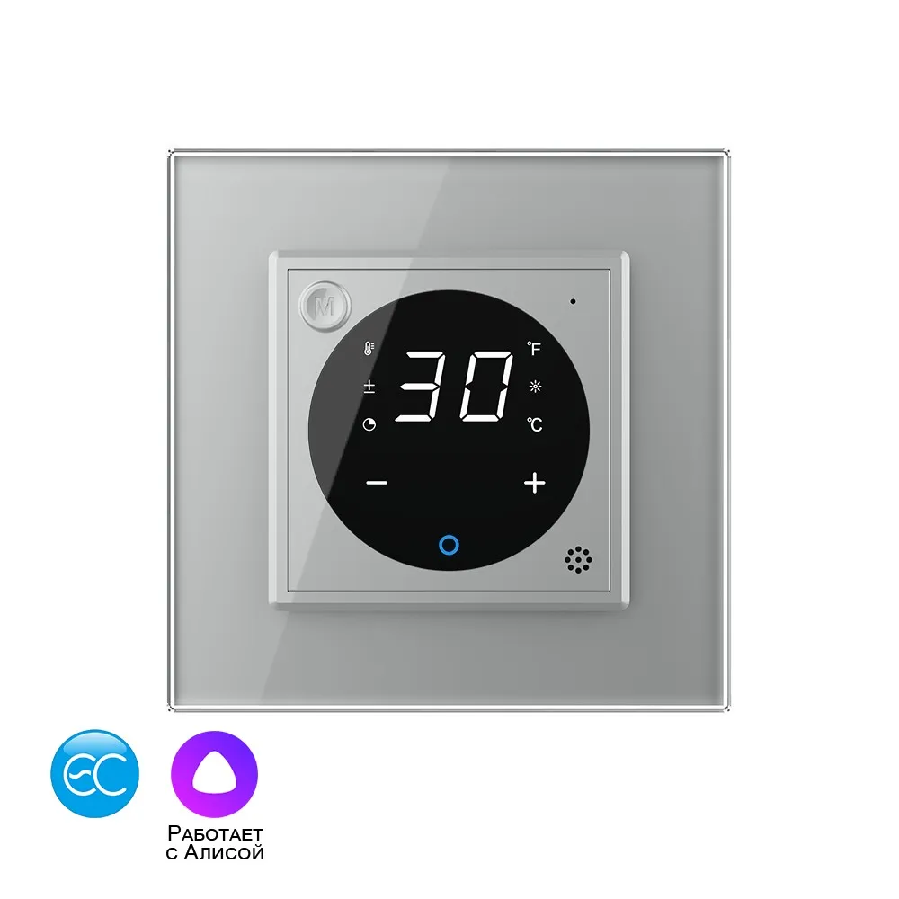Умный терморегулятор пола Livolo EC 16А, сенсорное управление, датчик воздуха, 1 пост, цвет серый
