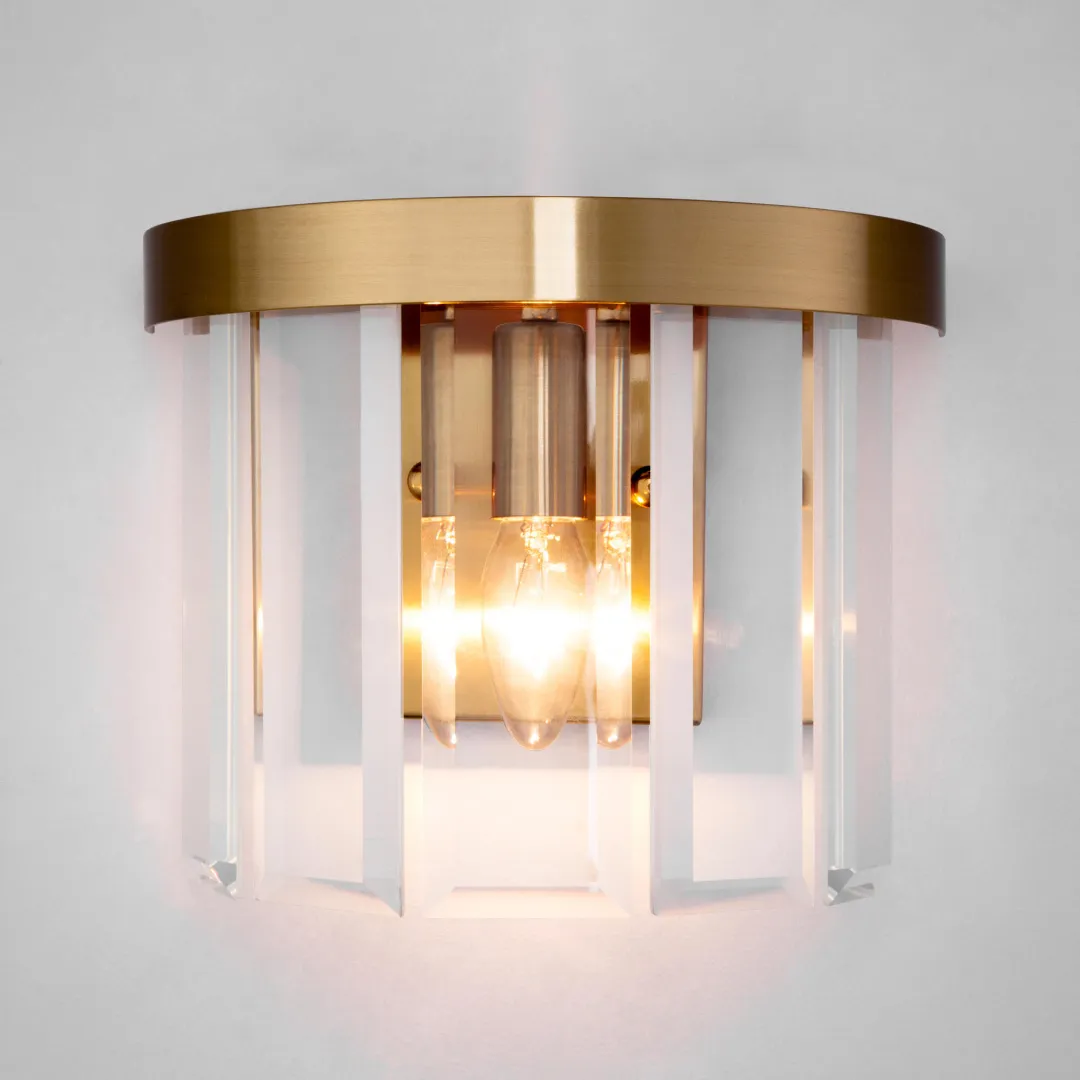 Бра с хрустальным декором 358/1 из коллекции Eclipse станет ярким световым акцентом в классических интерьерах и создаст качественное освещение на площади 1 м². Изящное бра украшено стеклянными подвесками, которые искрятся в лучах света, наполняя помещение выразительным блеском.