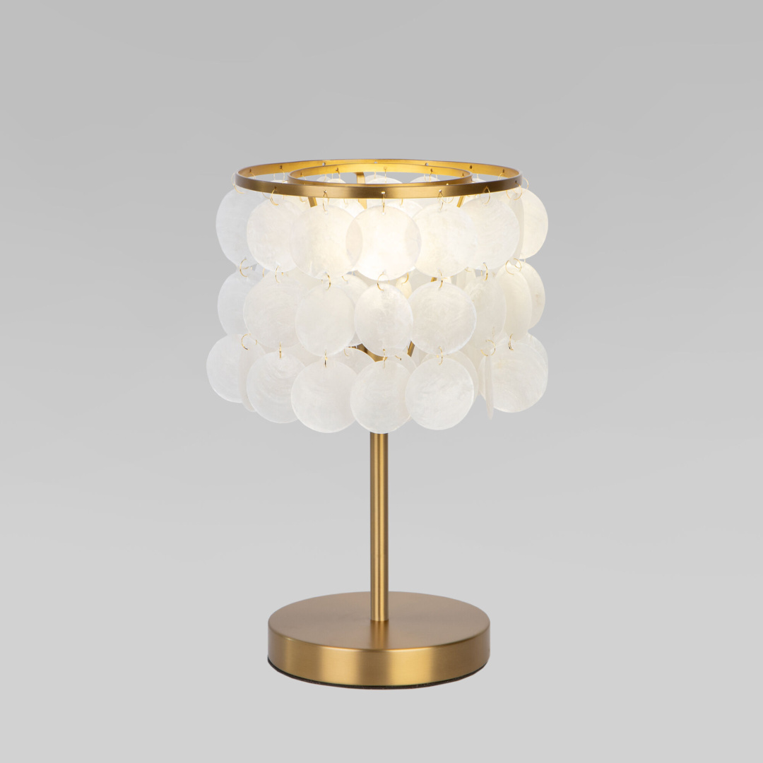 Благодаря перламутровым подвескам настольная лампа создает мягкое рассеянное свечение, подходящее для комфортного чтения книг в вечернее время. Прочный металлический корпус светильника устойчив к механическим воздействиям, а защитное покрытие обеспечивает надежную электроизоляцию и презентабельный внешний вид.