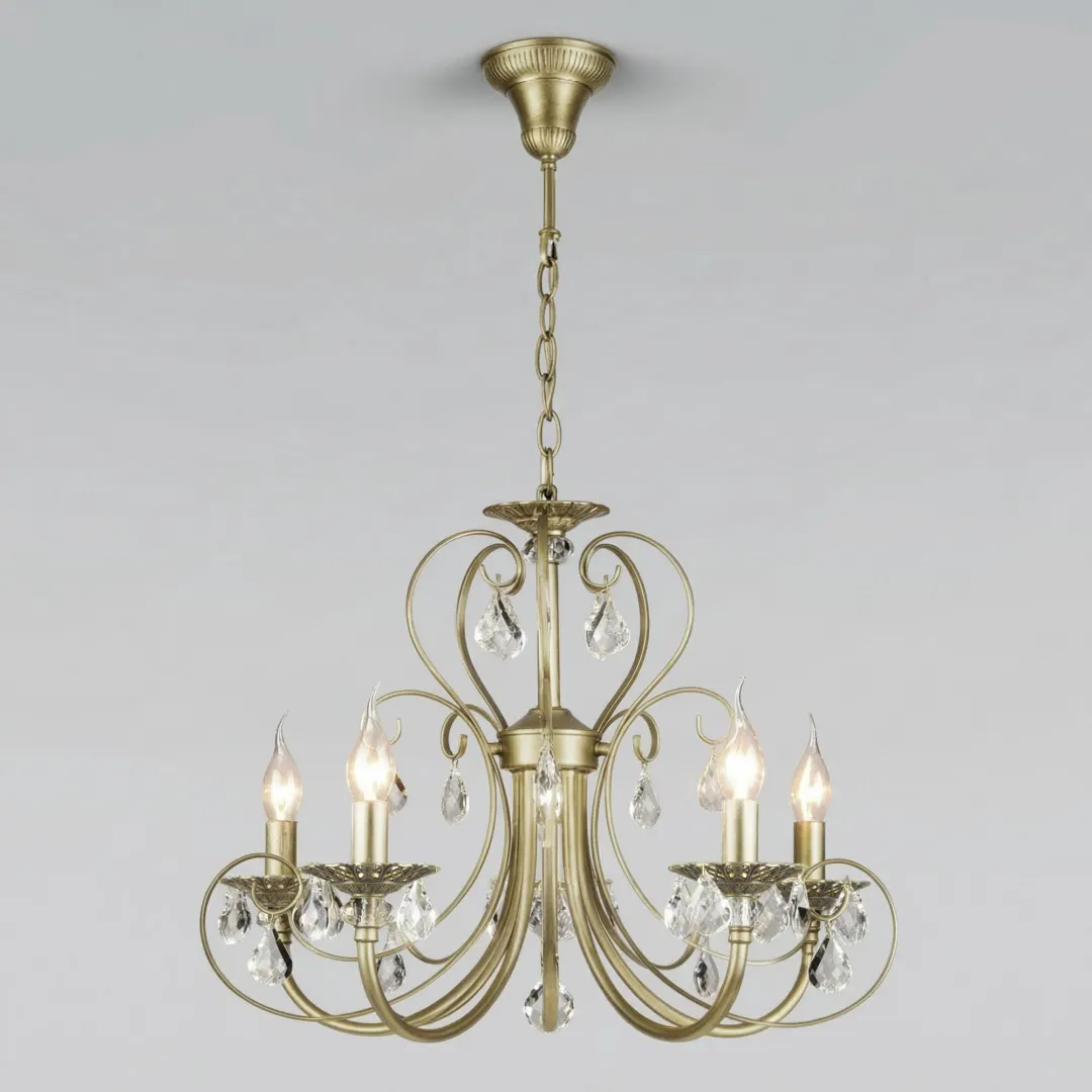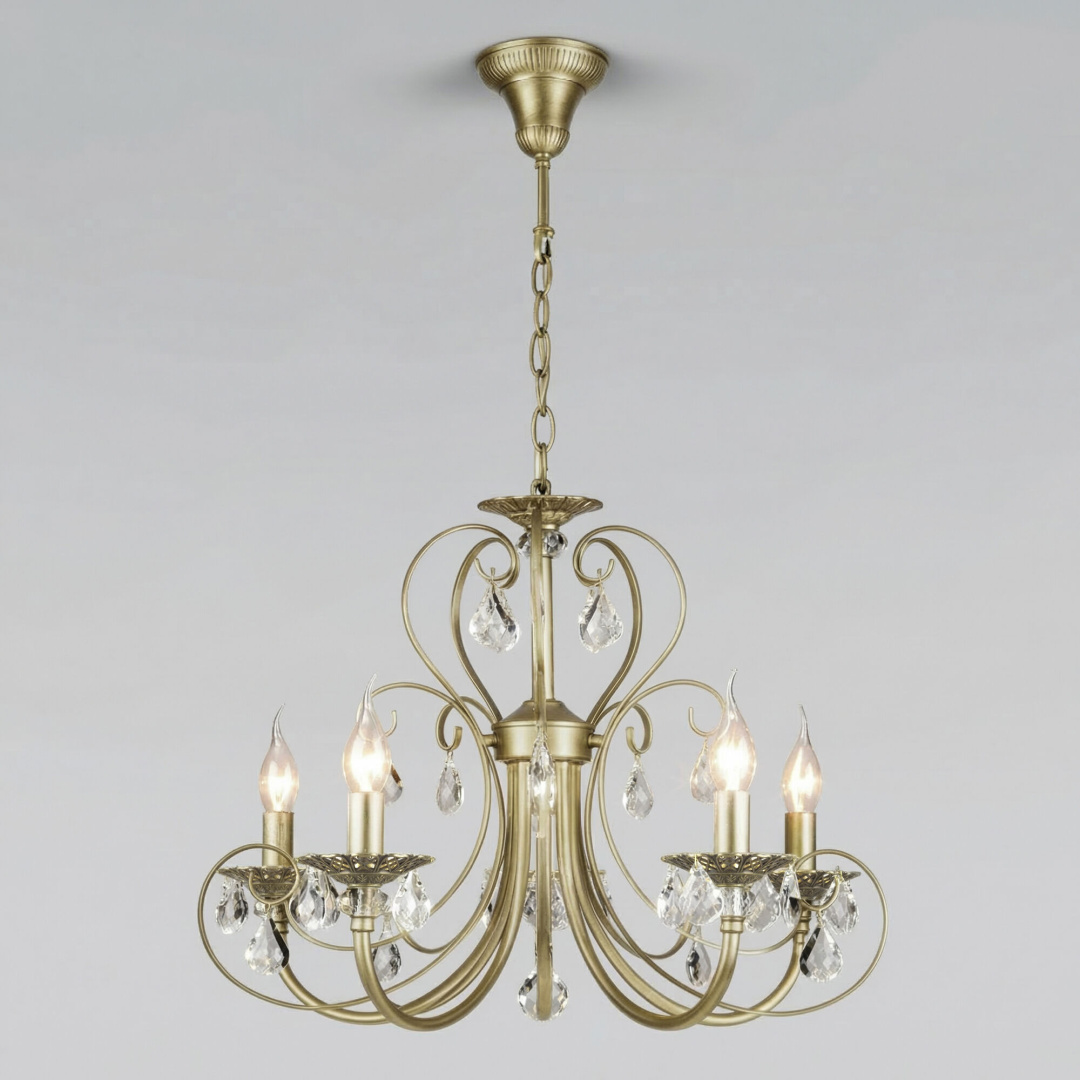 Мягкий свет подвесного светильника 3305/5 пробивается сквозь прозрачные грани хрусталя, отражается в латунной арматуре с витиеватыми вензелями и рисует на стенах волшебные узоры. Этот подвесной светильник не просто освещает — он создаёт атмосферу торжественности и уюта одновременно.