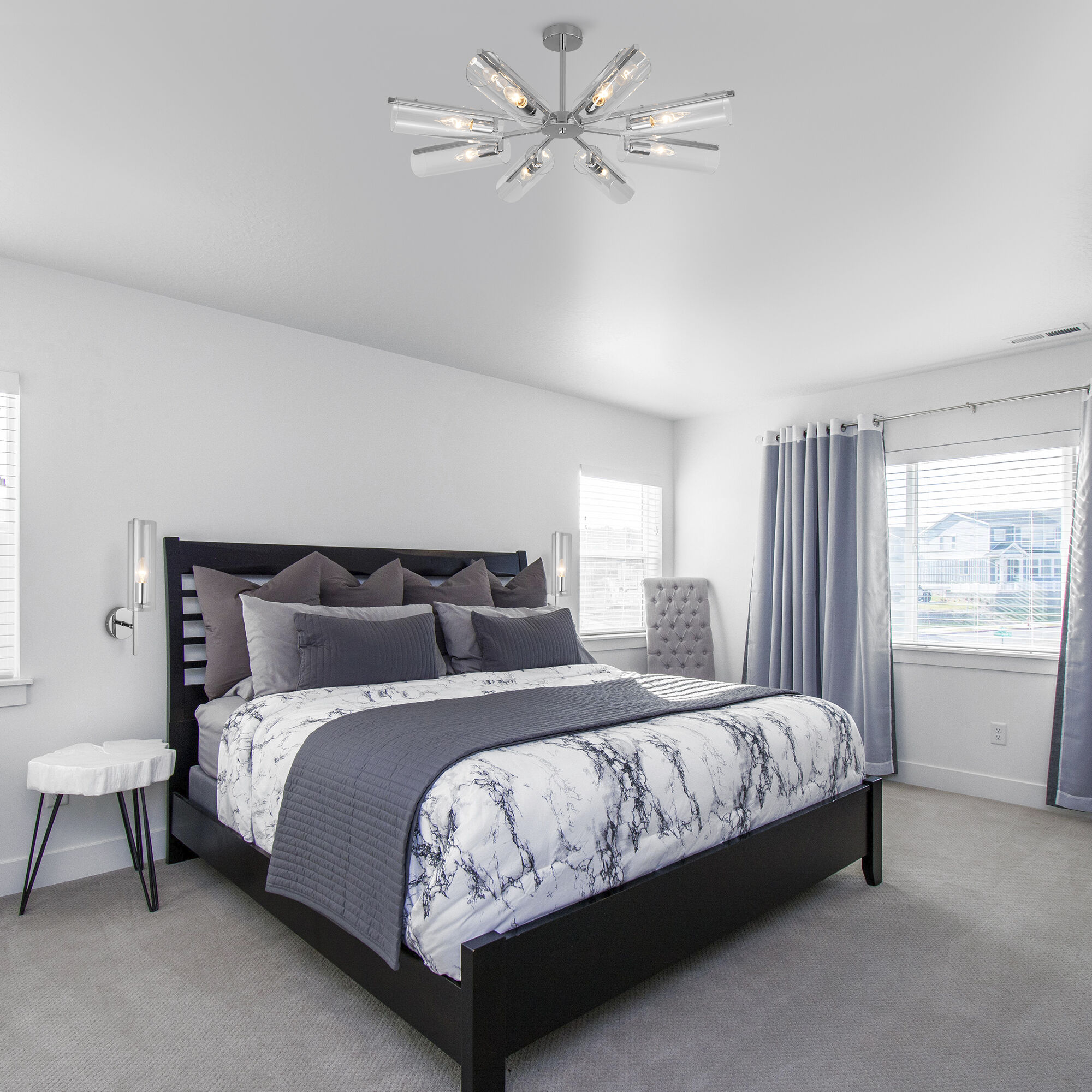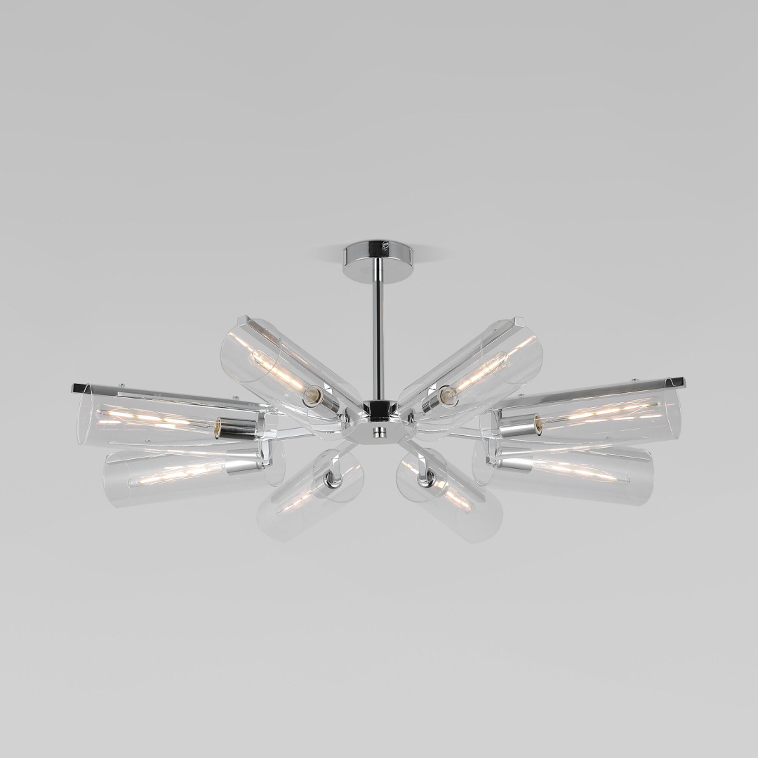 потолочный светильник с 8 рожками в цвете хром, предназначен для создания основного освещения в современных и классических интерьерах, подходит для различных типов помещений: гостиная, спальня и рассчитан на площадь освещения 16 м².