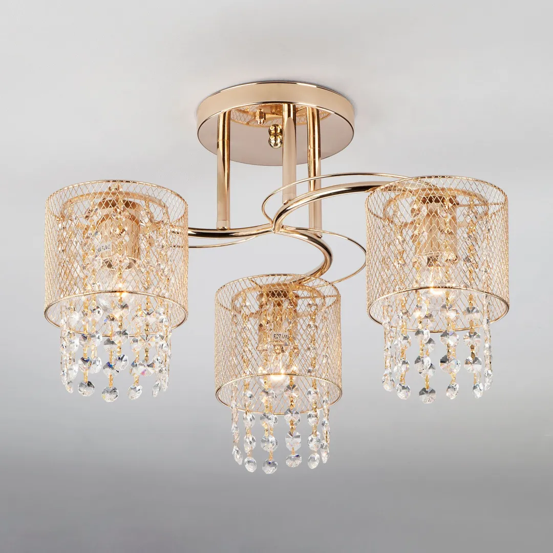 Потолочный светильник коллекции Bonnie воплощает в себе изысканный элемент декора, способный стать центром притяжения взглядов в любом интерьере. Эта уникальная люстра сочетает в себе металлические плафоны с декоративными элементами из хрусталя, которые создадут восхитительную игру света на стенах помещения. Металлическая сетка плафона создает легкий ажурный каркас, сквозь который мерцают тонкие лучи света, играя переливами оттенков. Люстра словно оживляет пространство, наполняя его мягким свечением и волшебством. Идеально подойдет для гостиной, спальни и холлов классических стилей, подчёркивая стиль владельца и вызывая восхищение гостей.