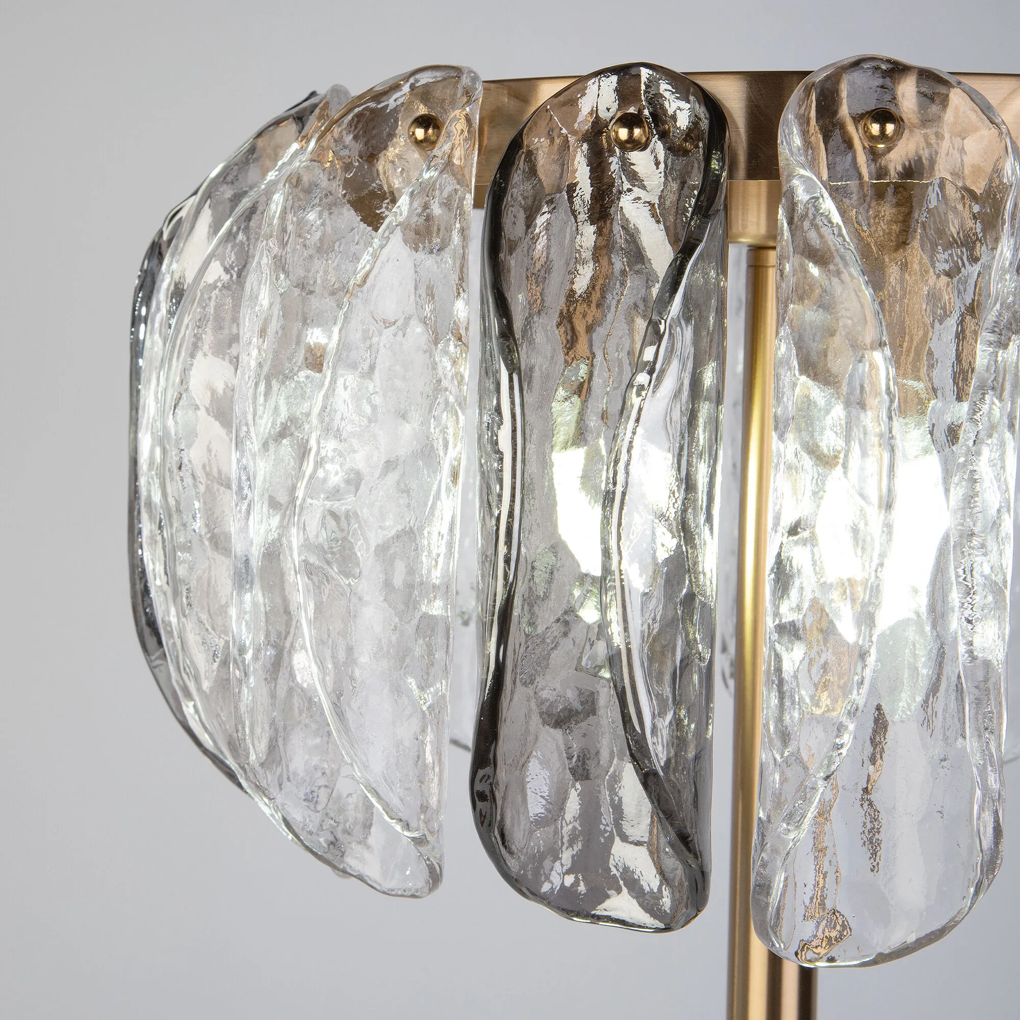Роскошная коллекция Callas – это воплощение природных мотивов. Уникальный дизайн создает уютную и неповторимую атмосферу в вашем доме. Композиция светильника кажется воздушной и легкой за счет плафонов из фактурного стекла в дымчатом и прозрачном цвете, по форме напоминающих утонченные лепестки цветка Каллы.