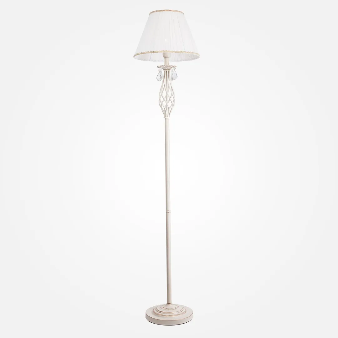 Напольный светильник с хрусталем 10073/1 белый с золотом-это стильный элемент светового дизайна в современных и классических интерьерах. Эффектный торшер со сменной лампой E14 поможет создать качественное дополнительное освещение на площади 5 м² и станет роскошным украшением вашей спальни или гостиной.