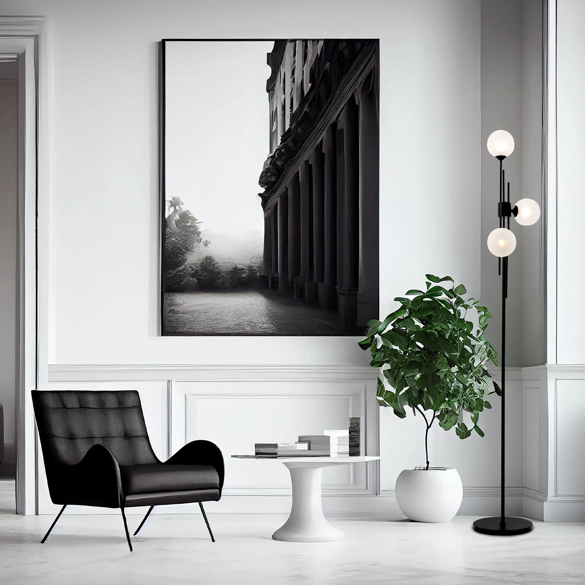 Напольный светильник со стеклянными плафонами 01383/3 черный - это стильный элемент светового дизайна в современных и классических интерьерах. Эффектный, выразительный, современный торшер со сменной лампой с цоколем G9 поможет создать качественное дополнительное освещение на площади 4 м² и станет изящным украшением вашей спальни или гостиной.