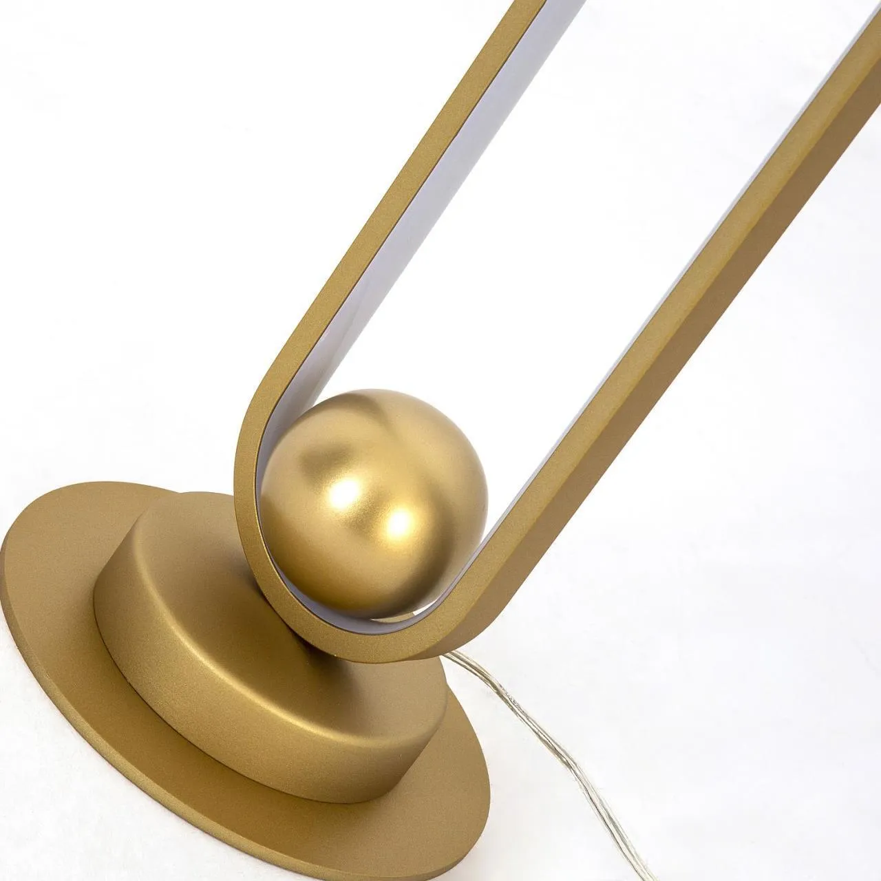 Металлический каркас золотого цвета, глянцевое черное покрытие декоративного шара, встроенная LED лента, выключатель на проводе.