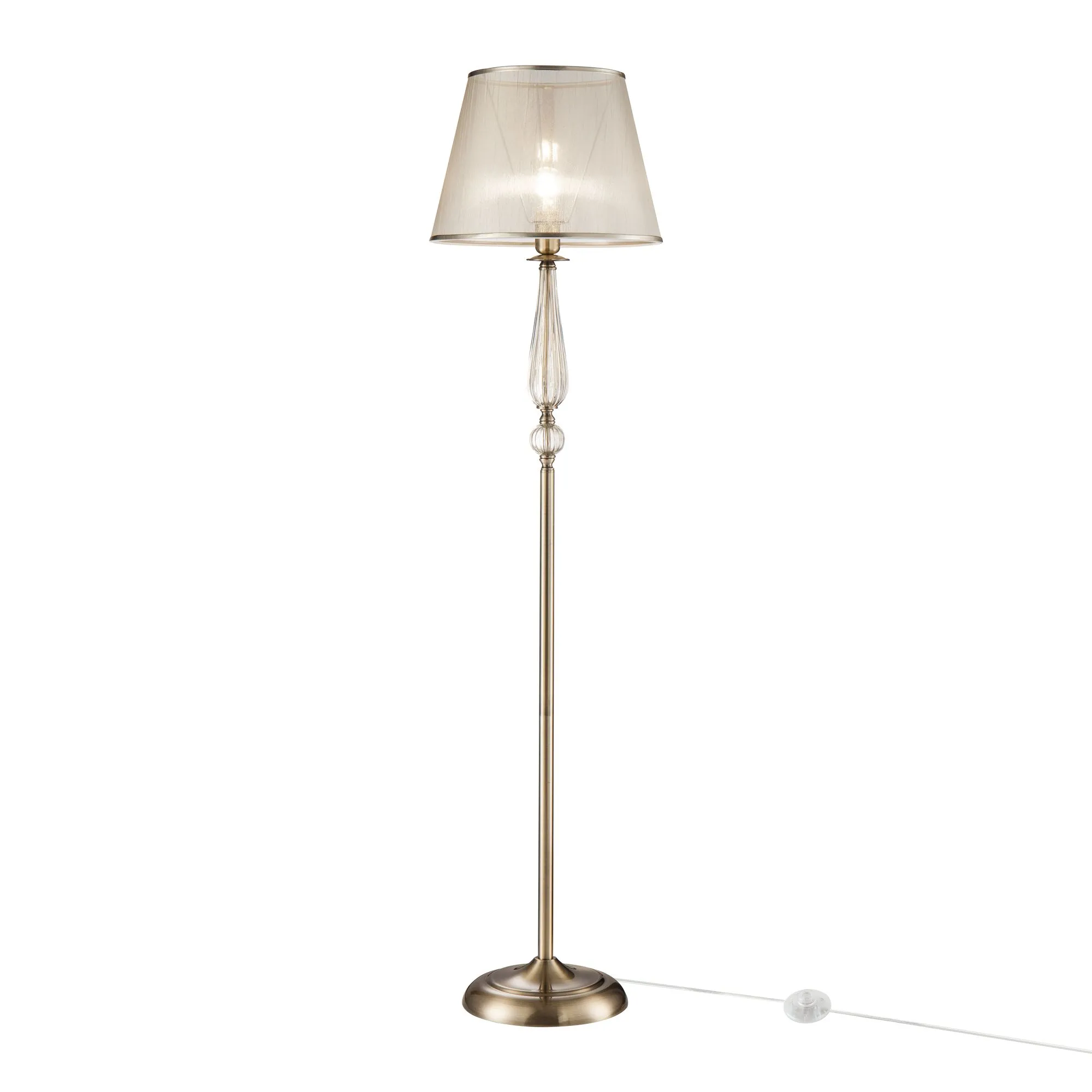Серия в классическом стиле. Главное украшение светильников Inessa – декоративные элементы арматуры из прозрачного стекла коньячного оттенка. Абажуры выполнены из органзы и обрамлены тесьмой в цвет арматуры, сделанной из металла. Широкая линейка позволит осветить все зоны помещения в едином стиле.