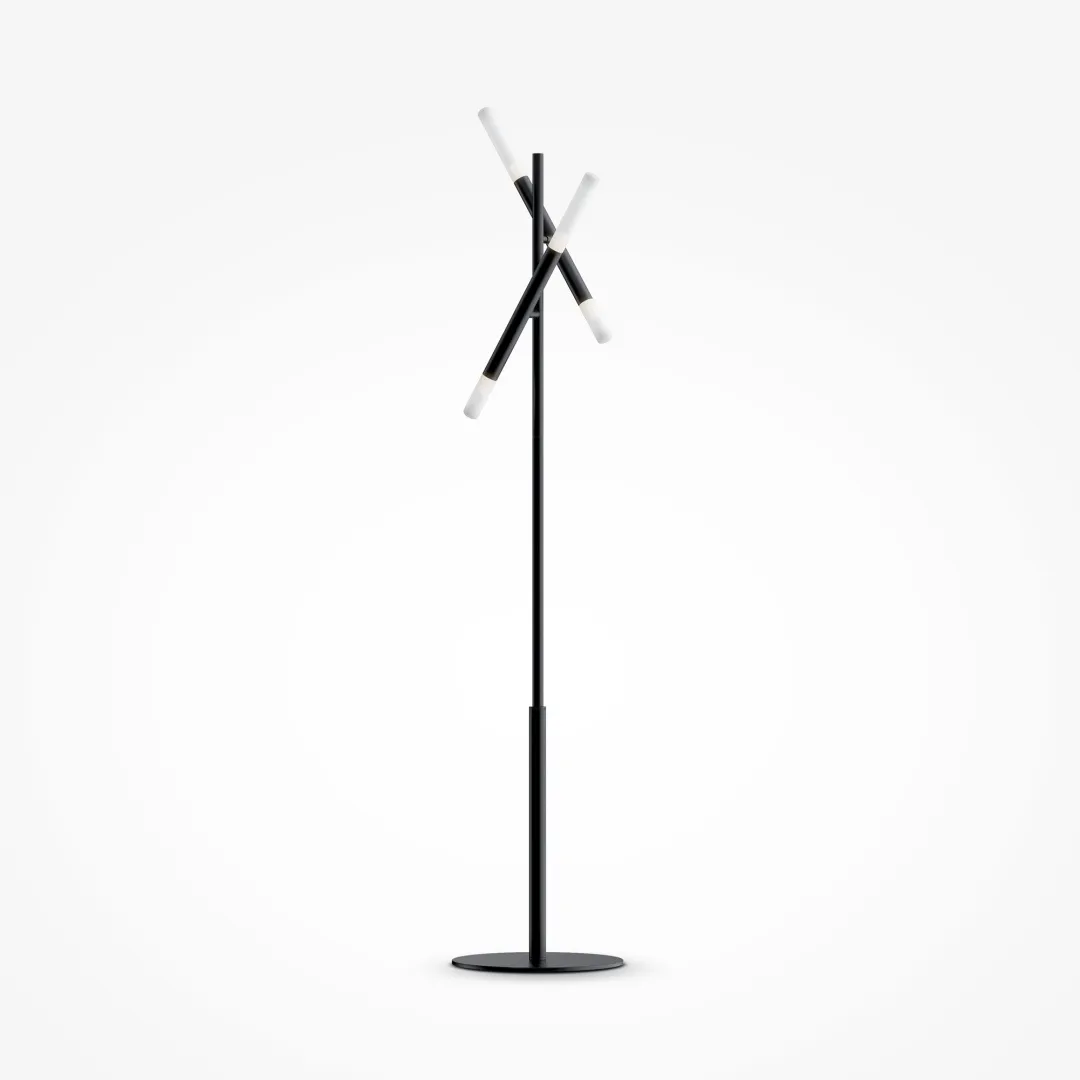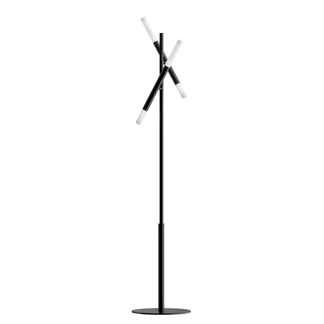 Динамичный дизайн светильников серии не останется незамеченным и станет эффектным акцентом в современном интерьере. Источники света размещены парно в цилиндрах-плафонах, каждый из которых закреплен на тонком металлическом каркасе и благодаря шарниру вращается на 340° по горизонтали и 90° по вертикали. Есть возможность видоизменять дизайн светильника, создавая уникальную композицию и формируя множество локальных сценариев освещения. Рассеиватели из матового стекла смягчают свет ламп и дарят комфортный световой поток. Каркас изготовлен из металла и выкрашен в черный матовый цвет. Серия содержит подвесные и потолочные модели, бра и торшеры. Все светильники оснащены цоколями для ламп G9. Комбинируйте их в группы для создания эксклюзивных световых сценариев.