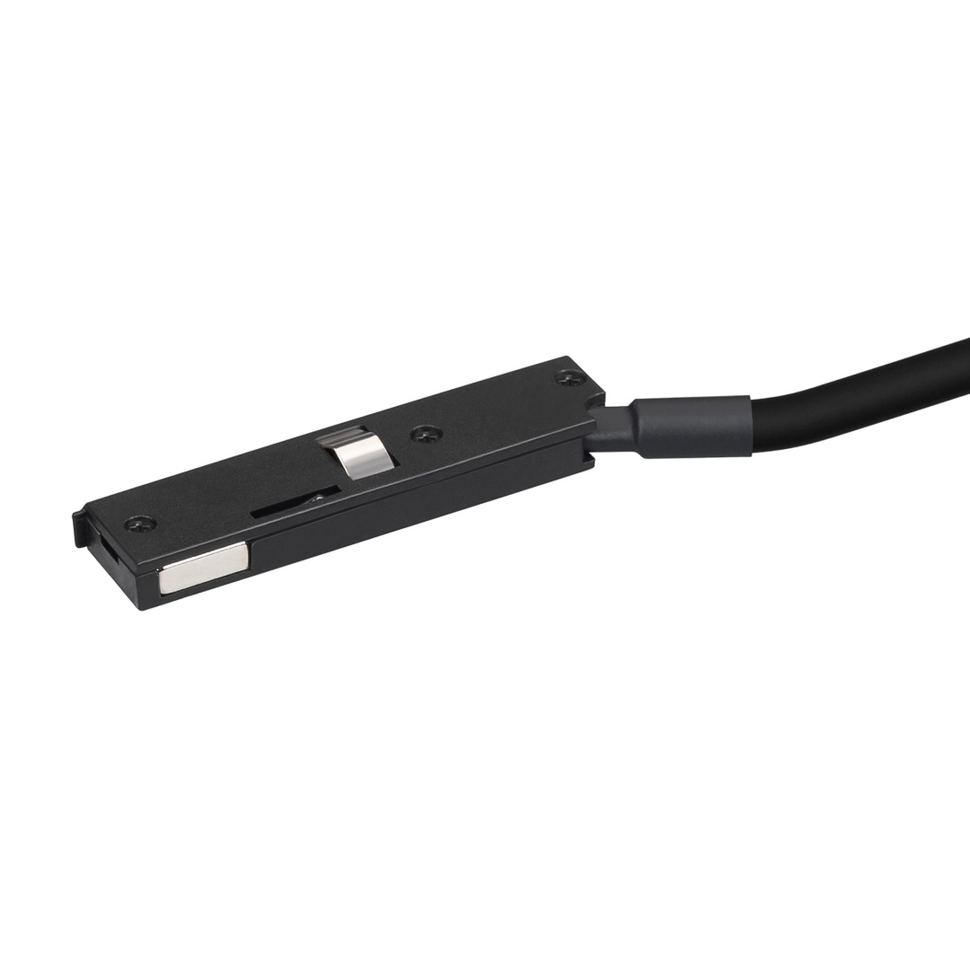Коннектор подвода питания для треков MAG-MICROCOSM. Цвет Черный. Кабель в комплекте. Длина кабеля 1.5 м, DC24V. Габариты 46х5х11 мм.